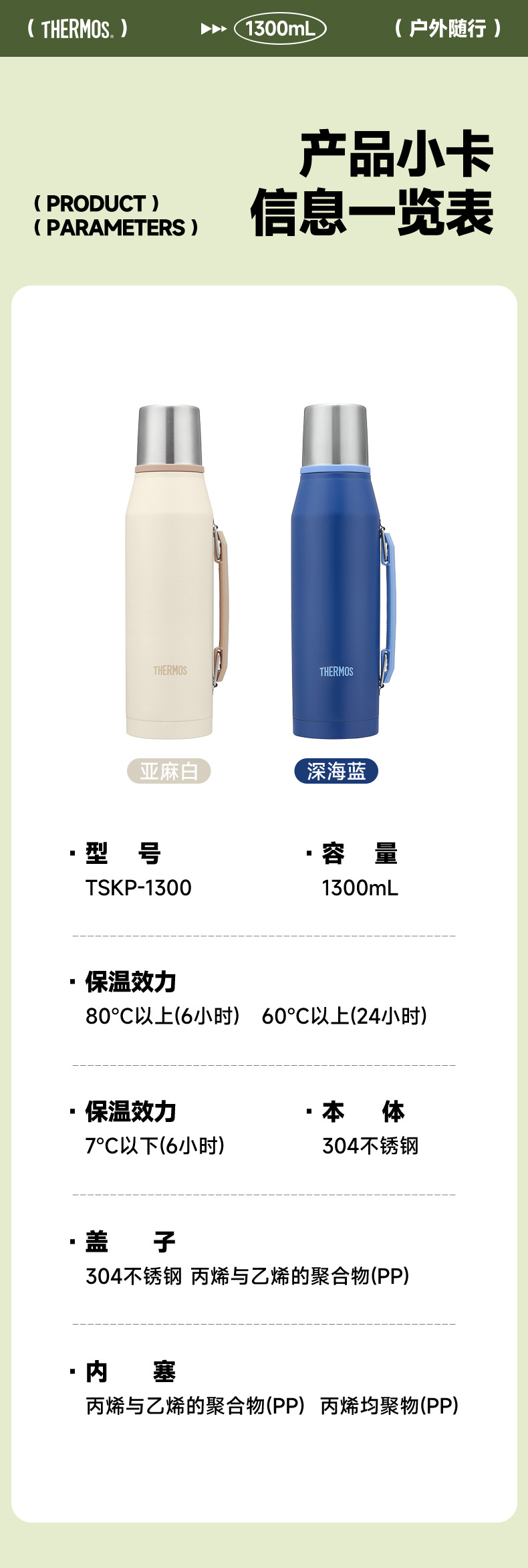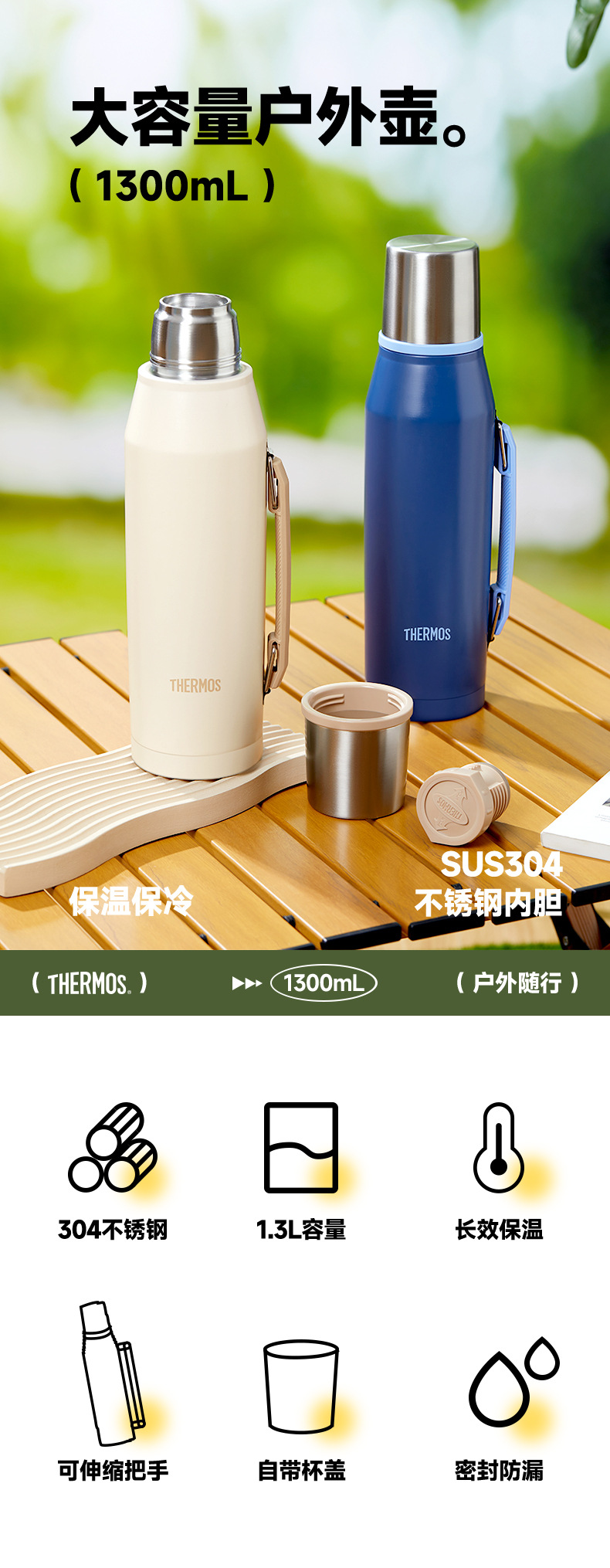 보온병 큰 용량 보온병 TSKP-1300 간단한 휴대용 여행 자동차 캠핑 보온병 주전자