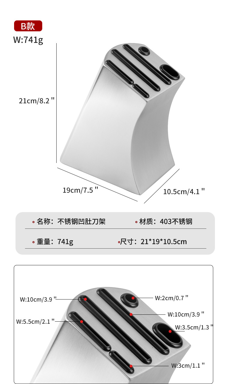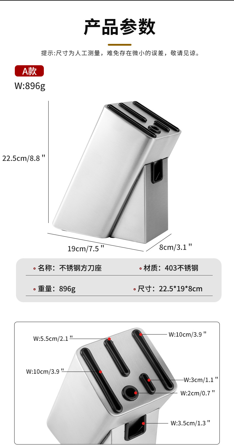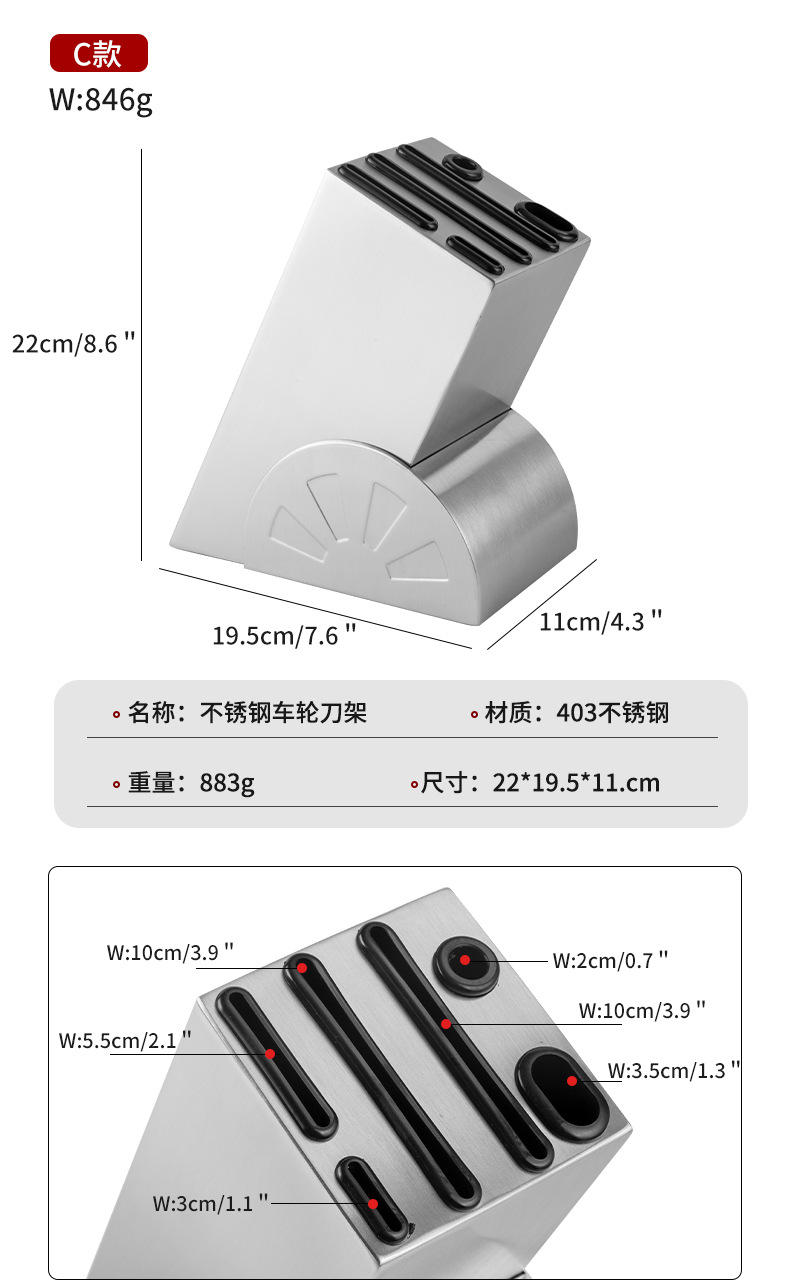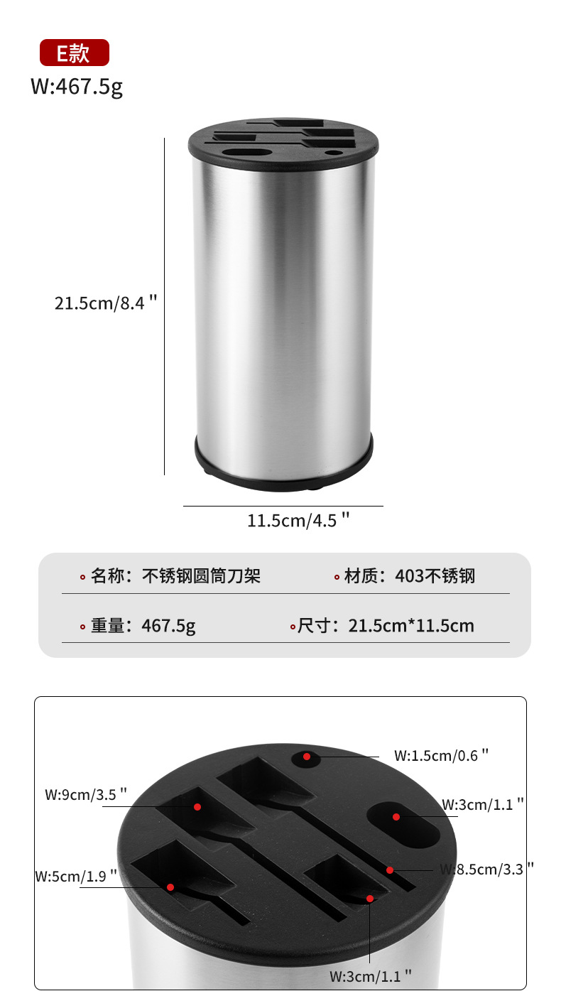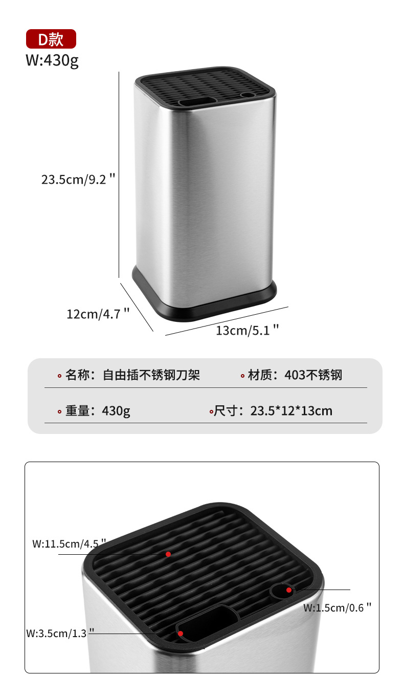 • 자유롭게 삽입할 수 있는 스테인리스 스틸 칼 홀더