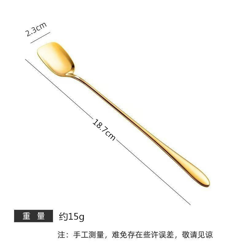 스테인레스 스틸 스퀘어 헤드 스푼 골든 커피 혼합 스푼 크리에이티브 롱 핸들 바 아이스 스푼 머그잔 선물 스푼 세트