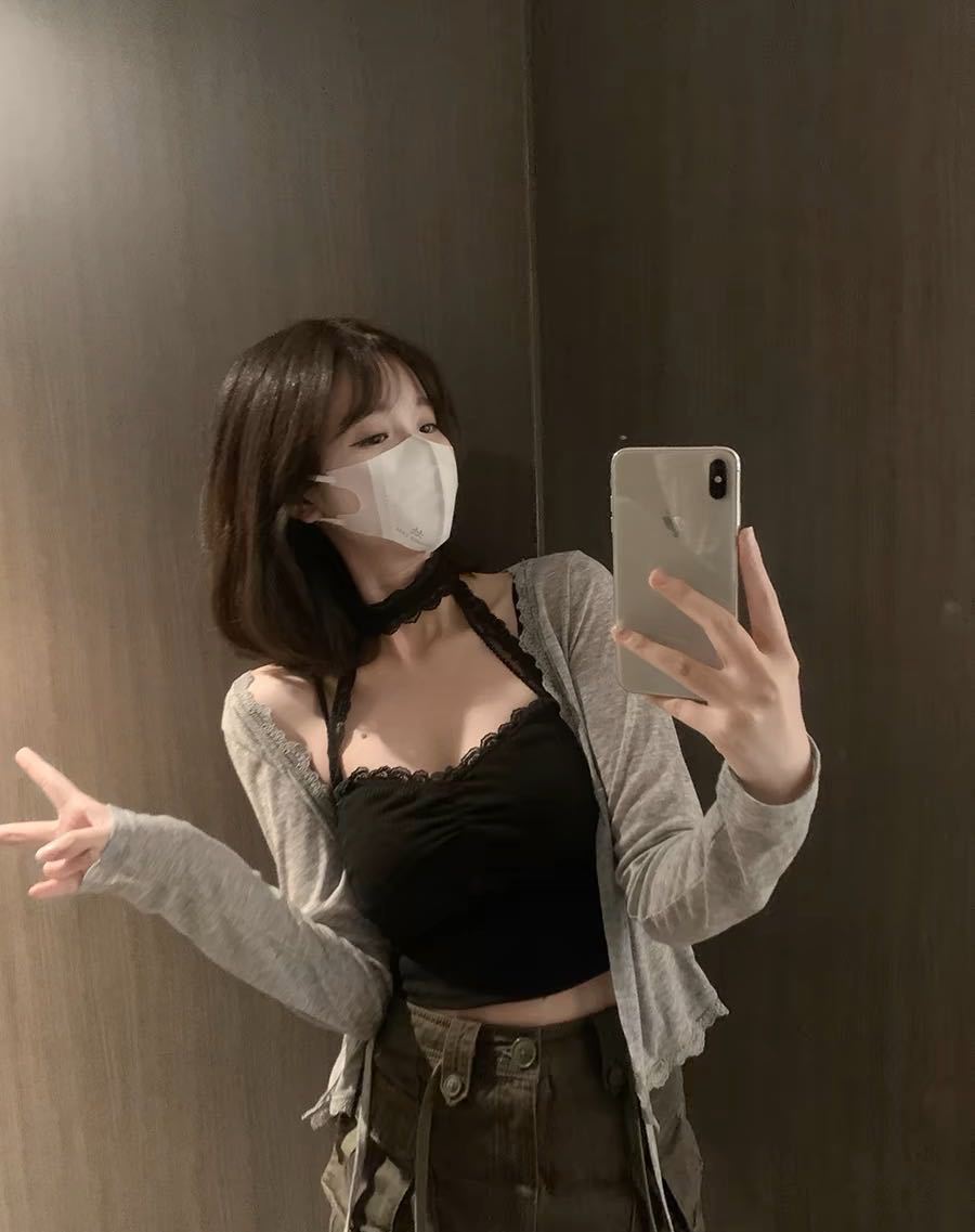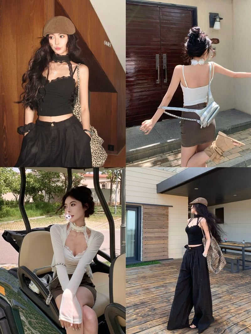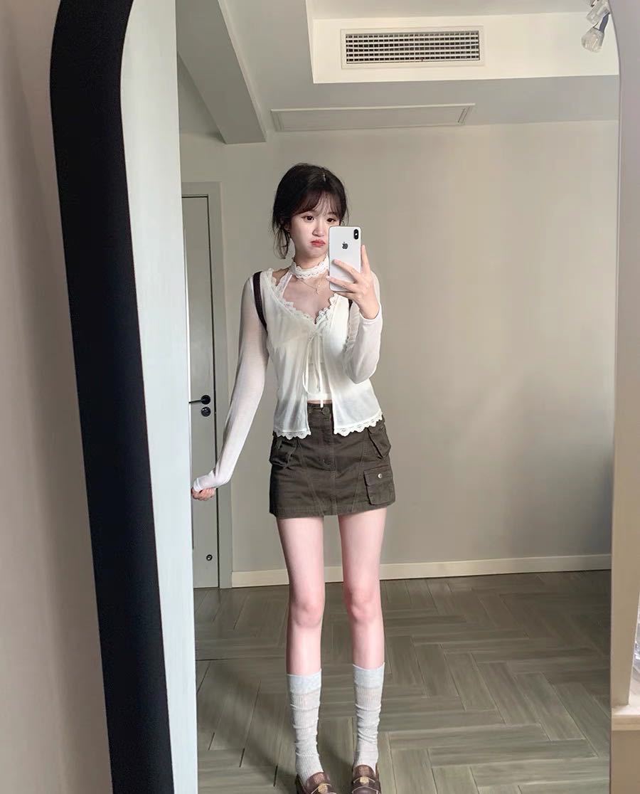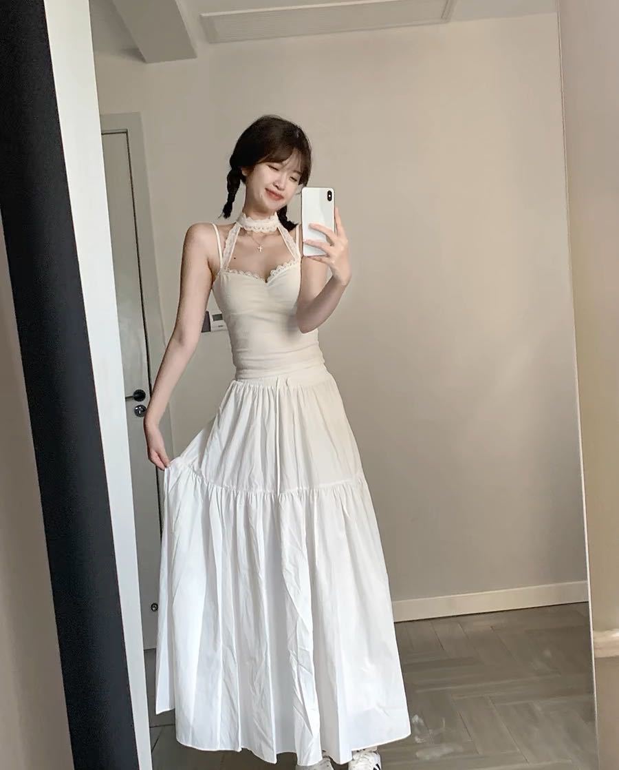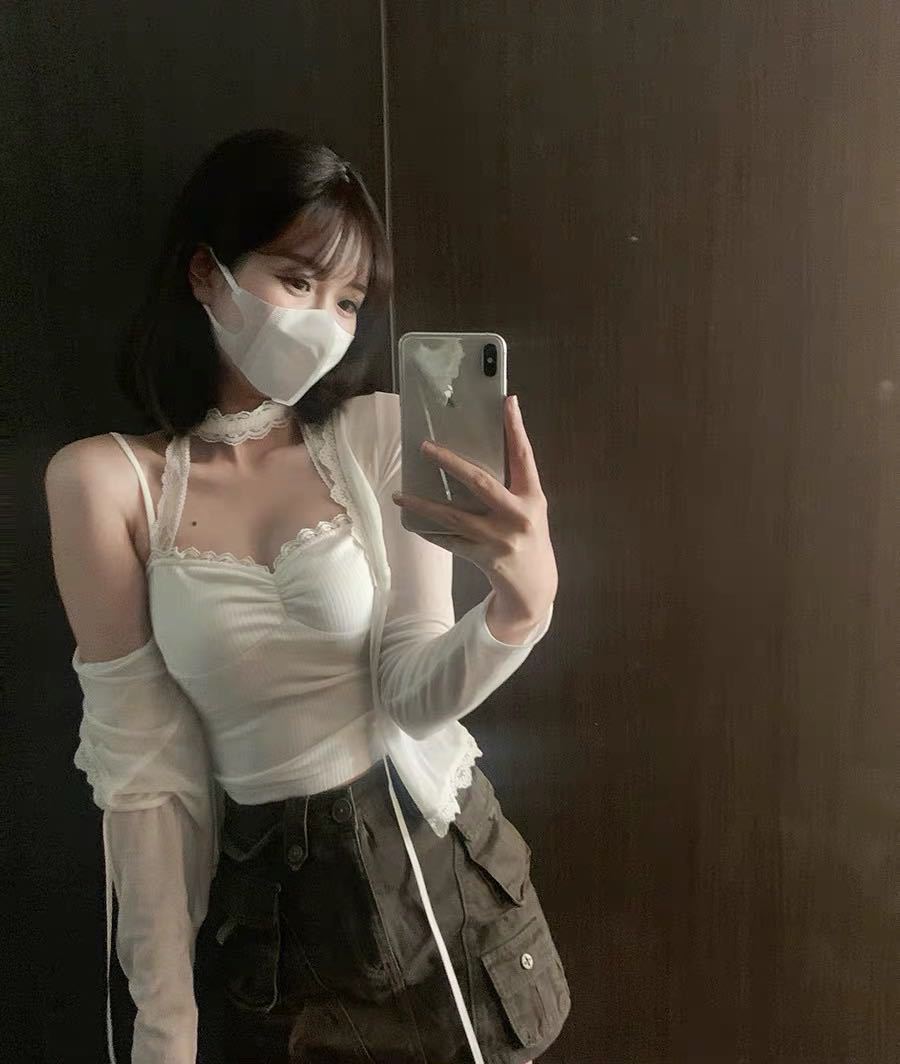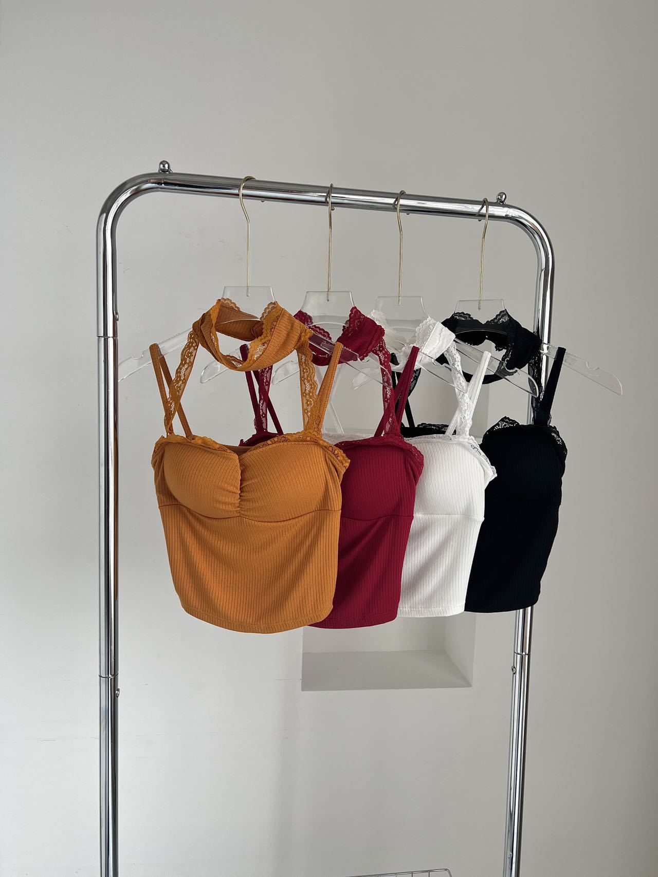 1814 # 새로운 순수 스파이스 소녀 스타일 레이스 바느질 교수형 넥 슬림 카미 솔 소녀의 감정 탑