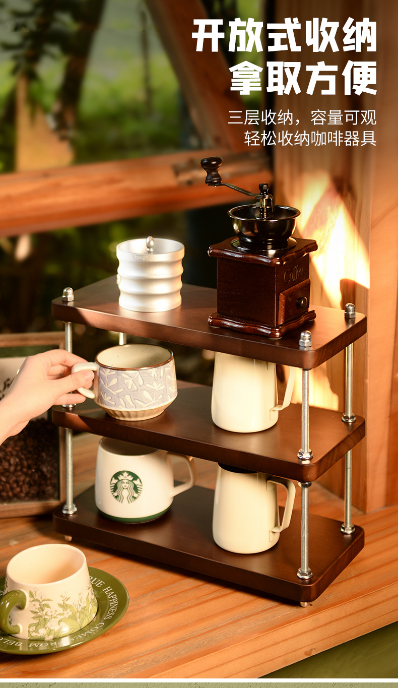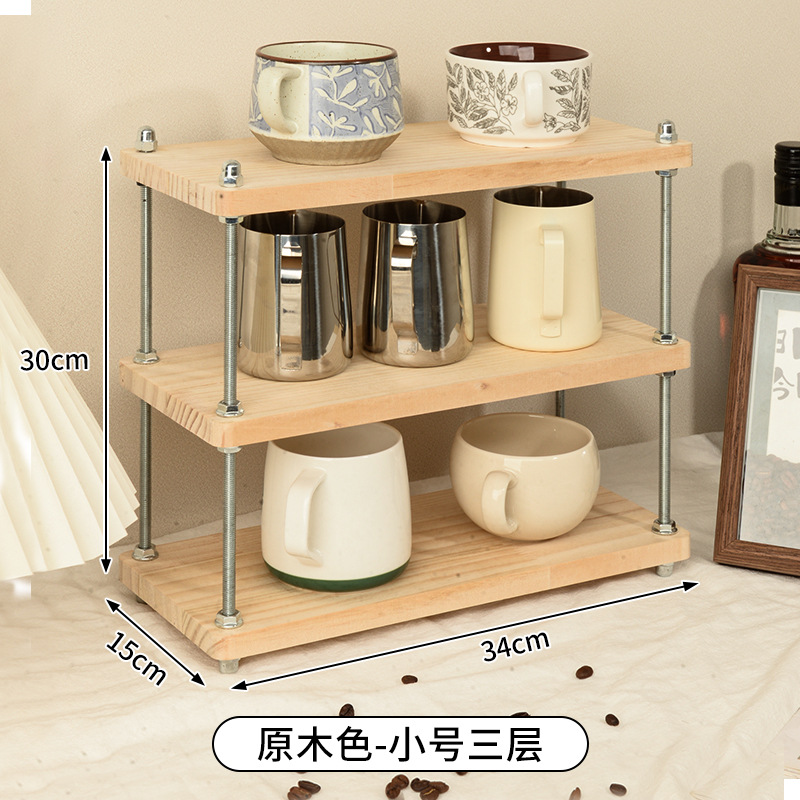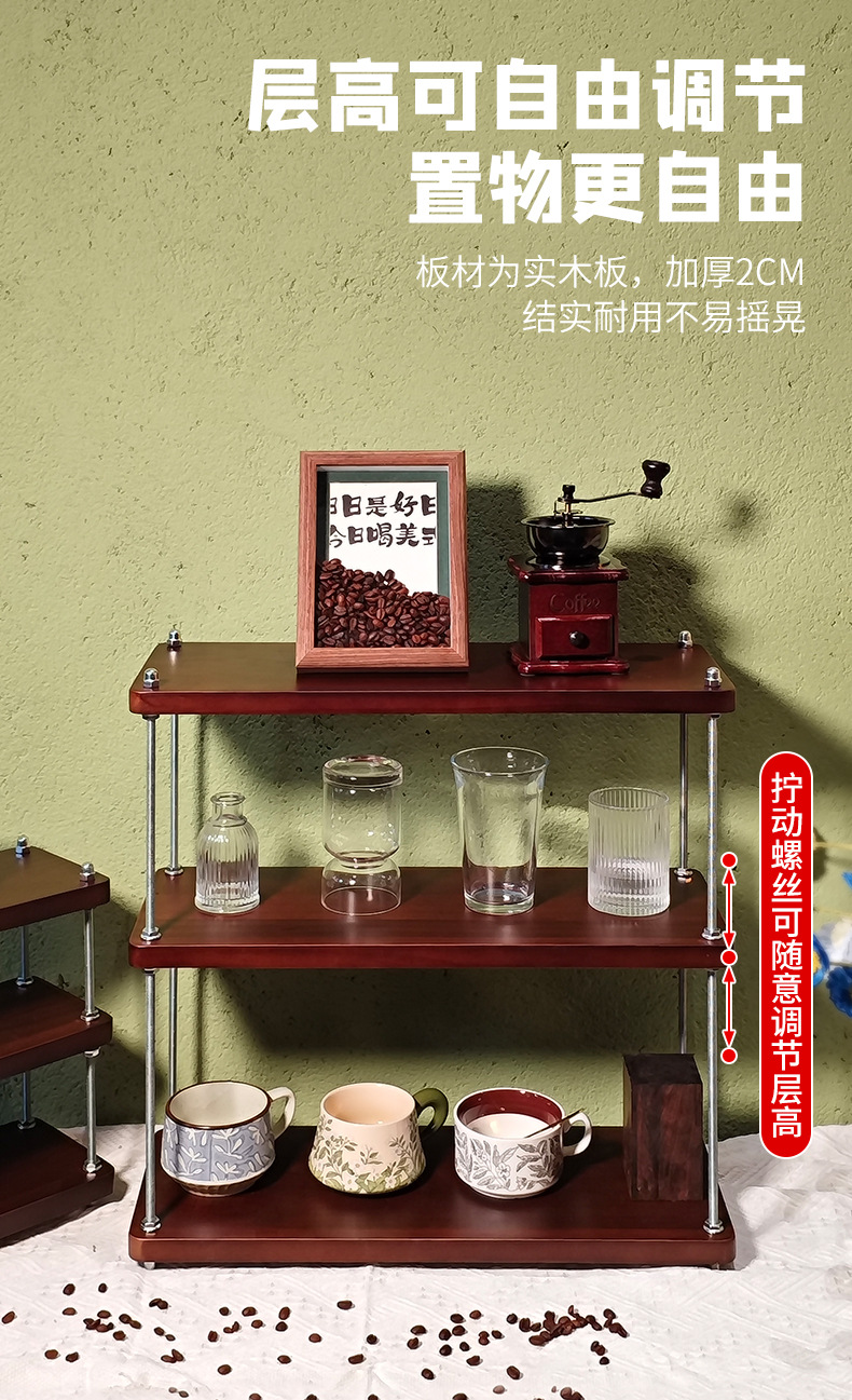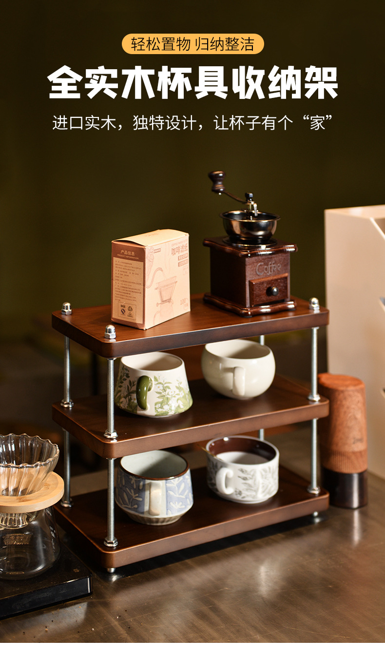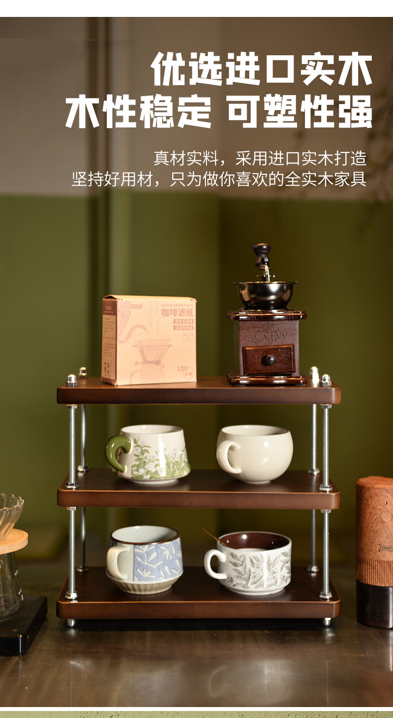 단단한 나무 다층 저장 랙 주방 카페 카운터 탑 DIY 골동품 간단한 조정 가능한 찻잔 디스플레이 랙