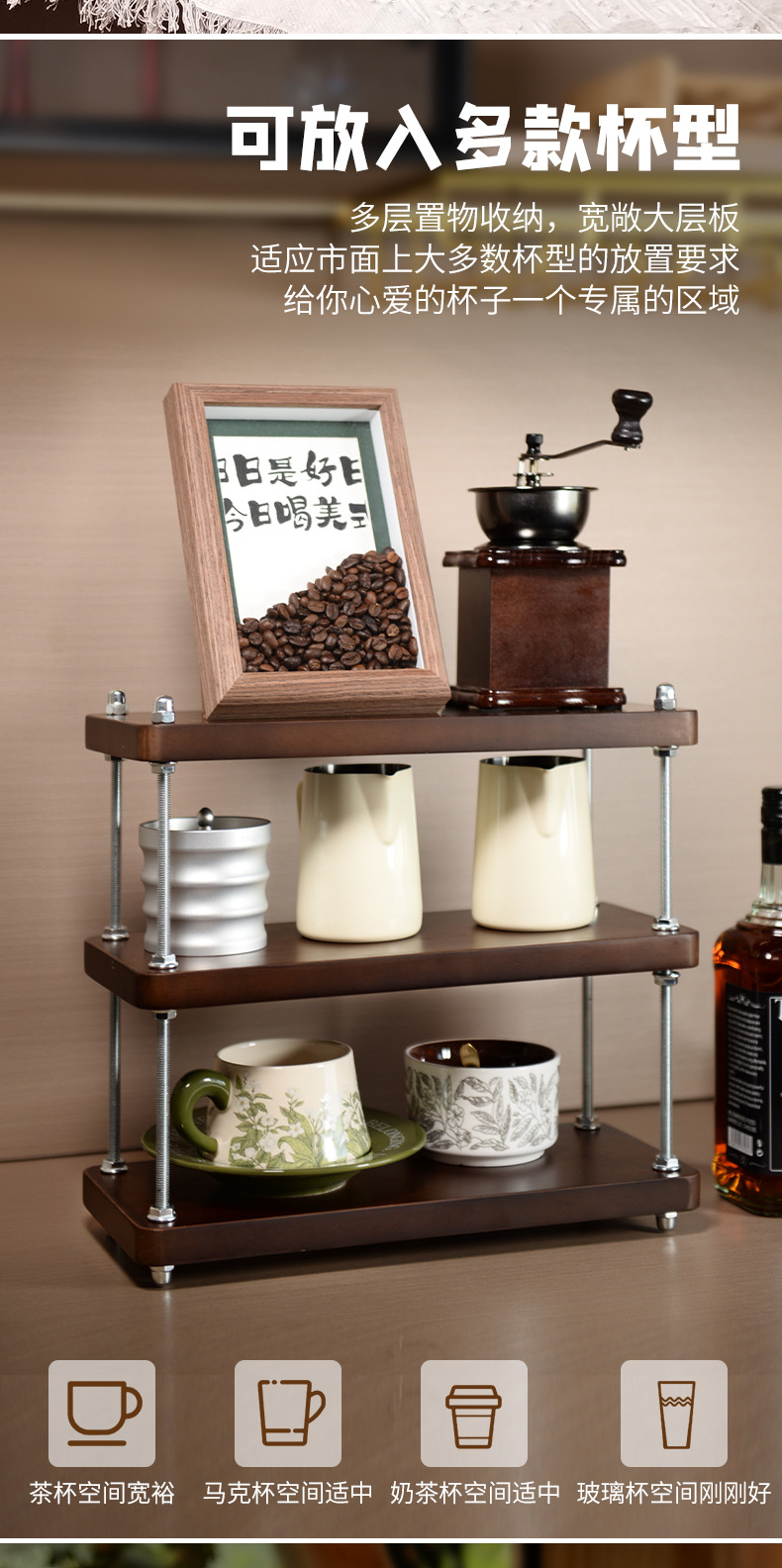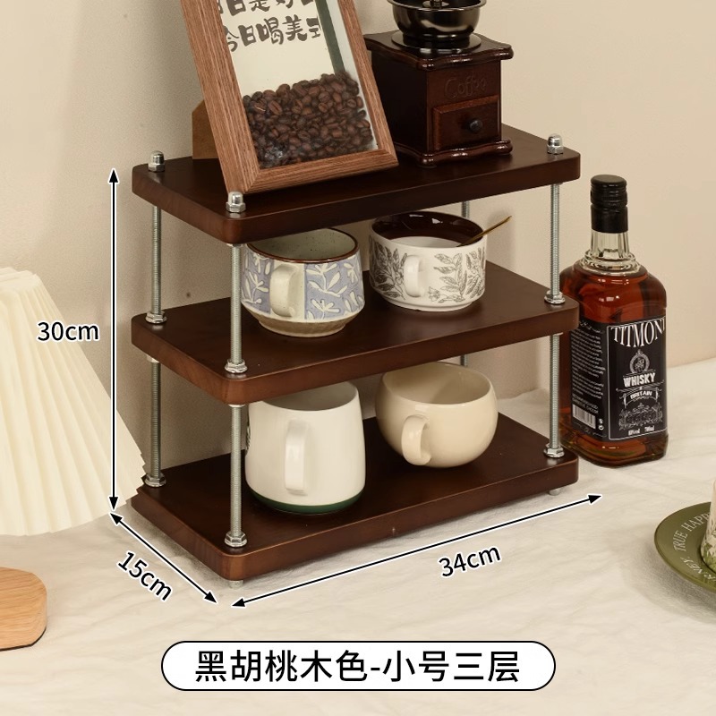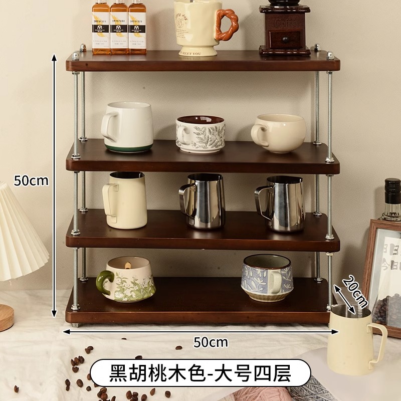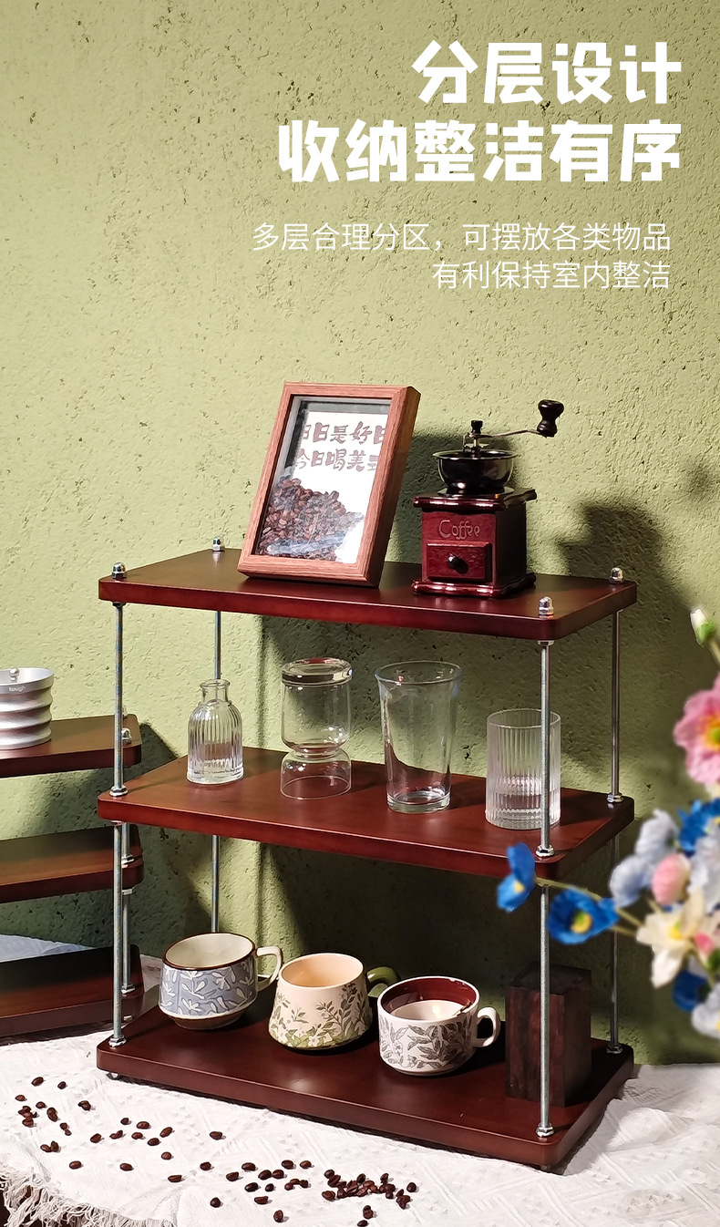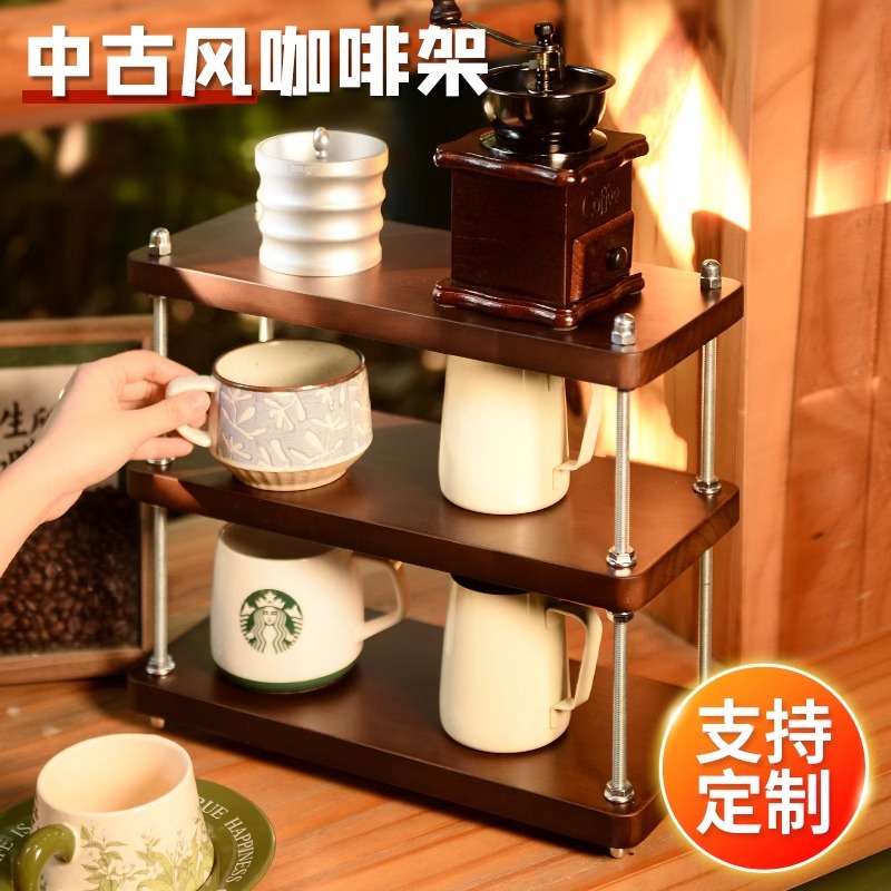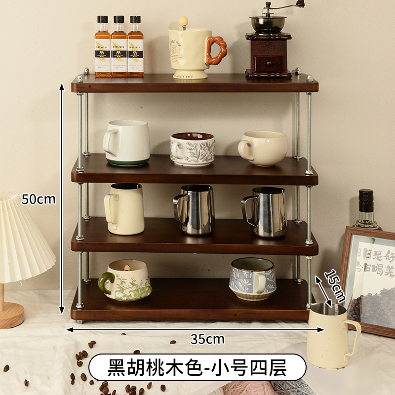 단단한 나무 다층 저장 랙 주방 카페 카운터 탑 DIY 골동품 간단한 조정 가능한 찻잔 디스플레이 랙스토어 가기