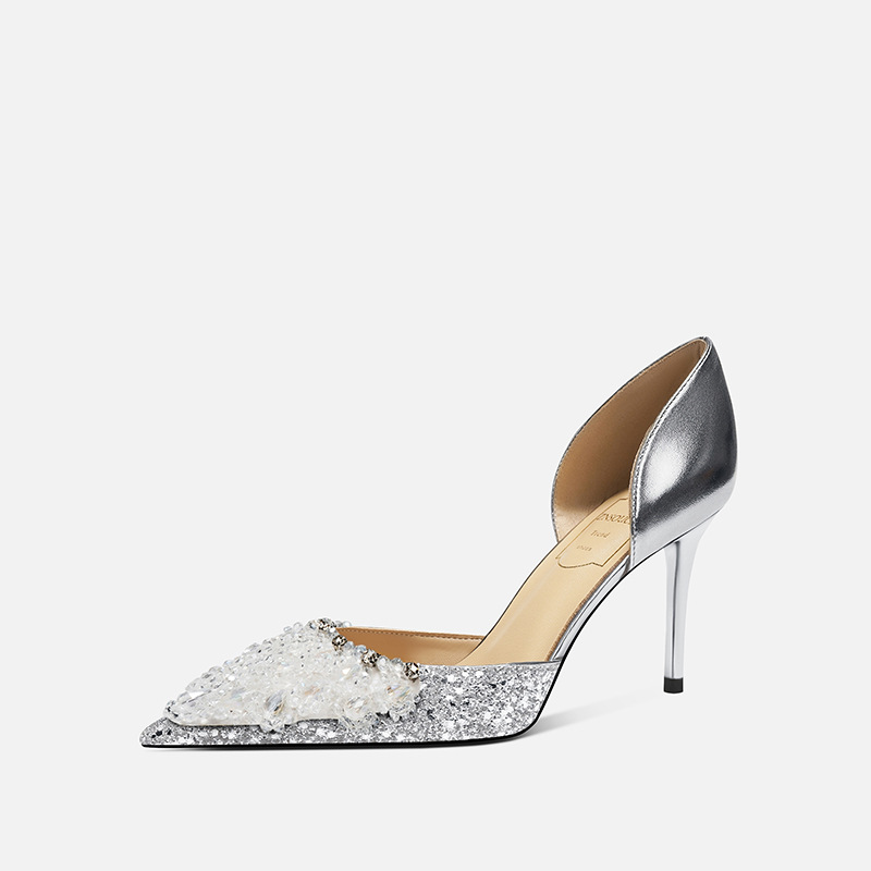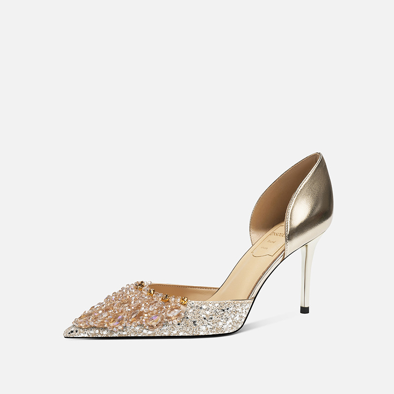 708-C68 모조 다이아몬드 신발 하이힐 프랑스 기질 결혼식 신발 신부 메인 원사 웨딩 신발 속이 빈 샌들 특허 가죽