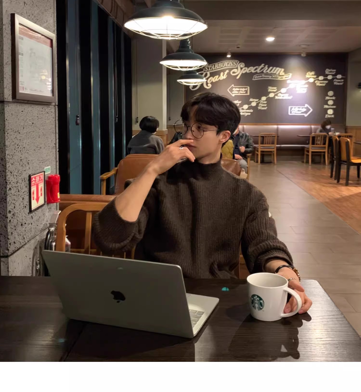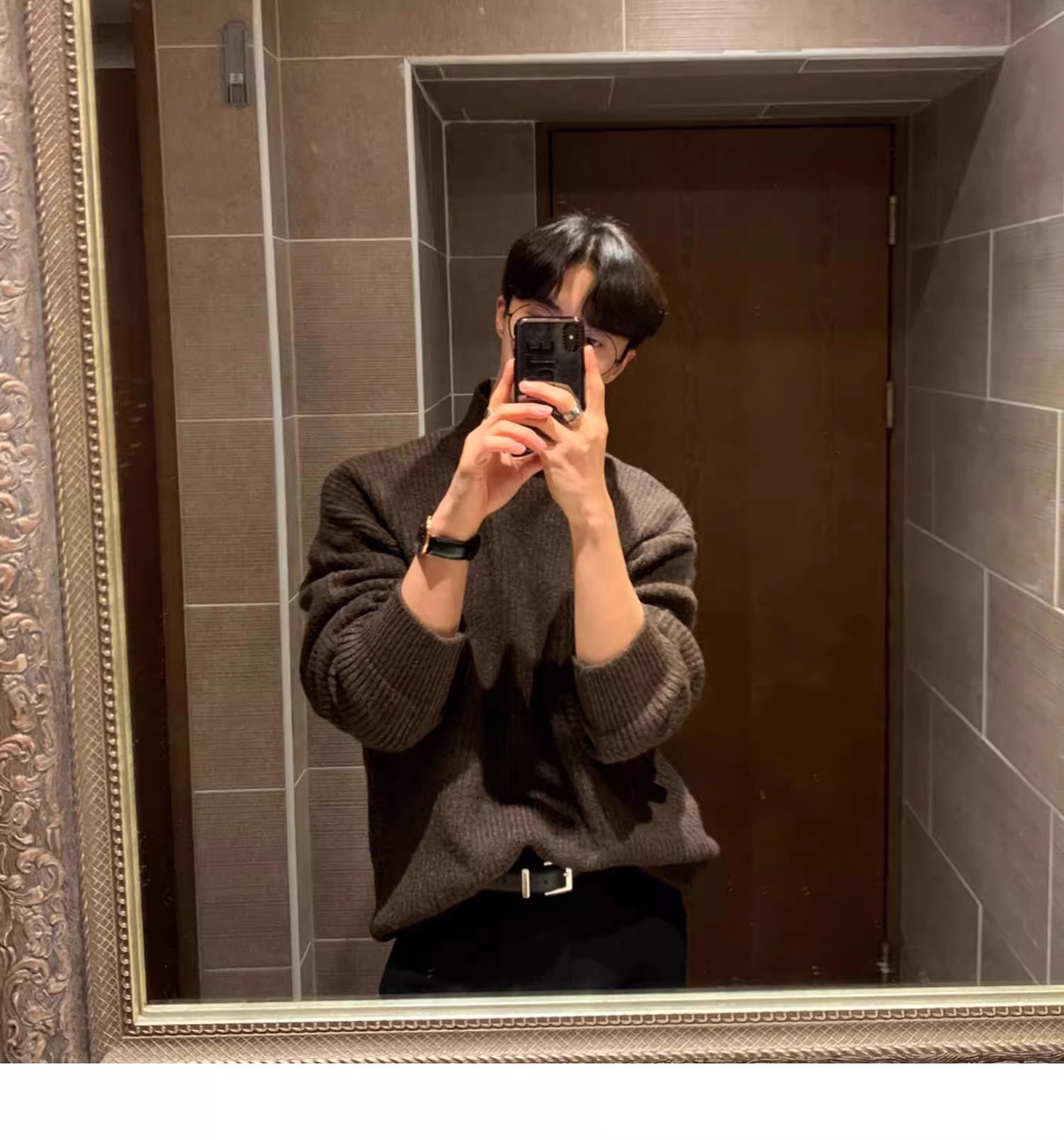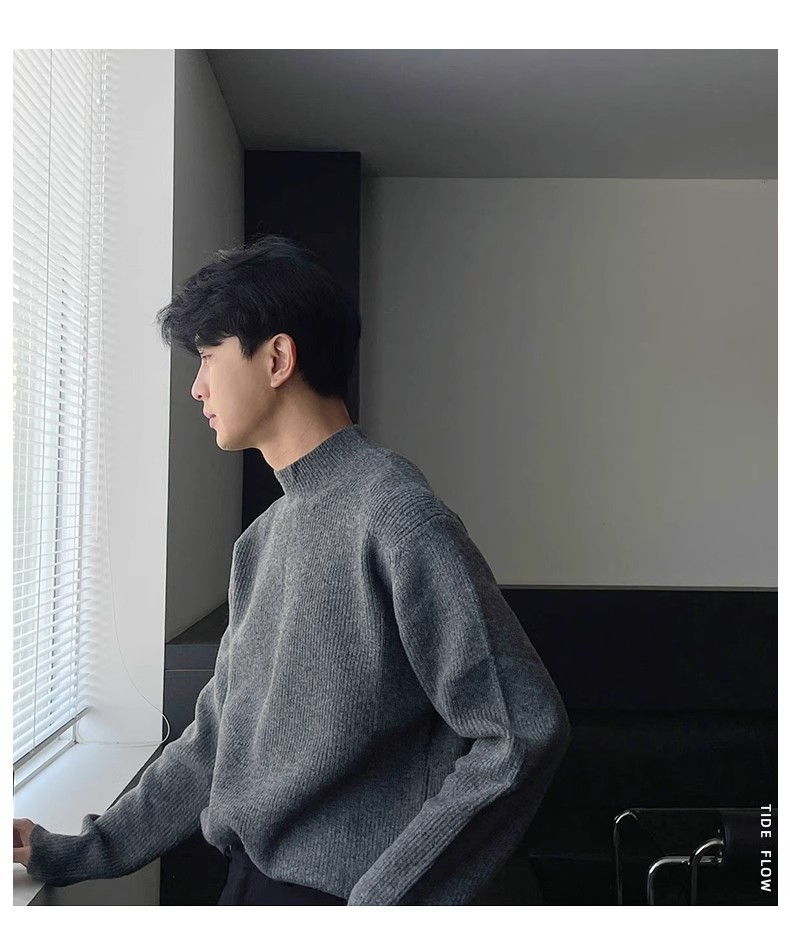 INTFEDAY 한국 스타일 가을 및 겨울 품질 세미 하이 칼라 바닥 셔츠 남성용 단색 소프트 왁스 네트 버전 스웨터 생성 헤어스토어 가기