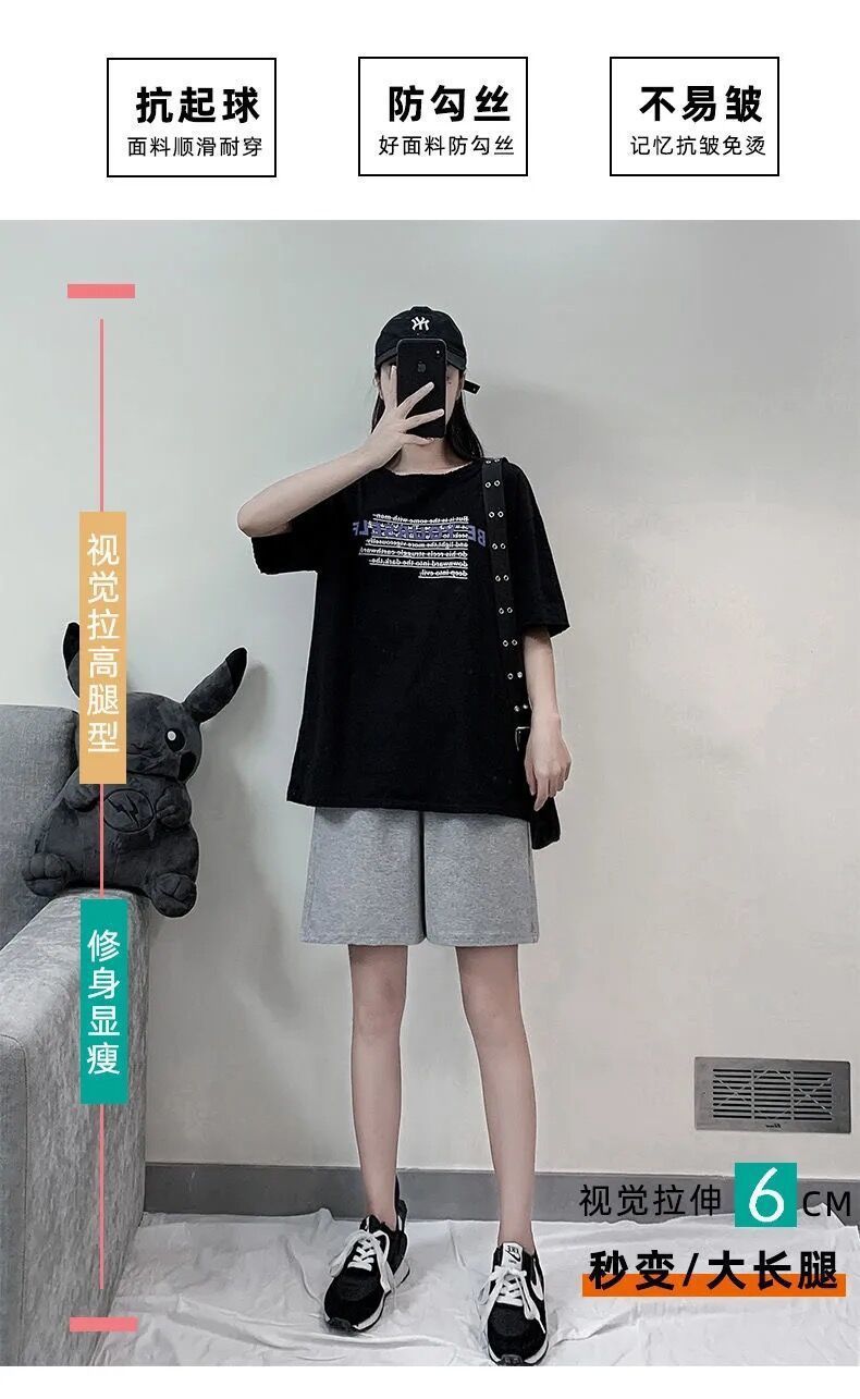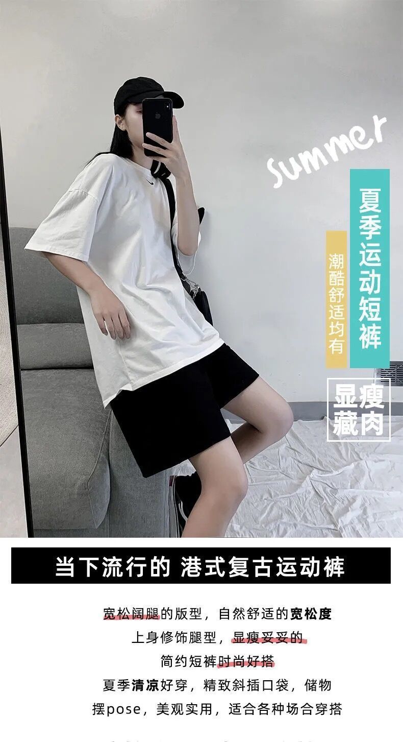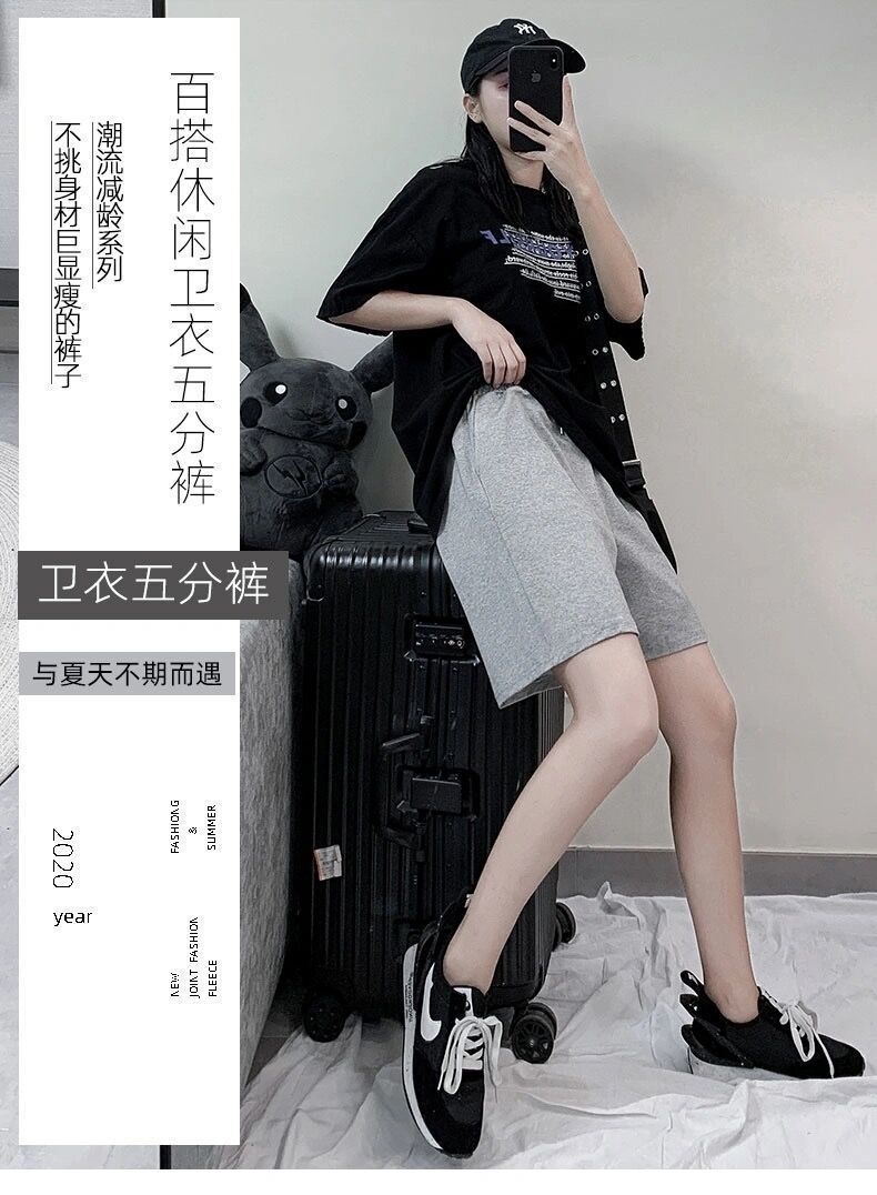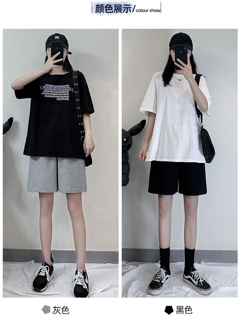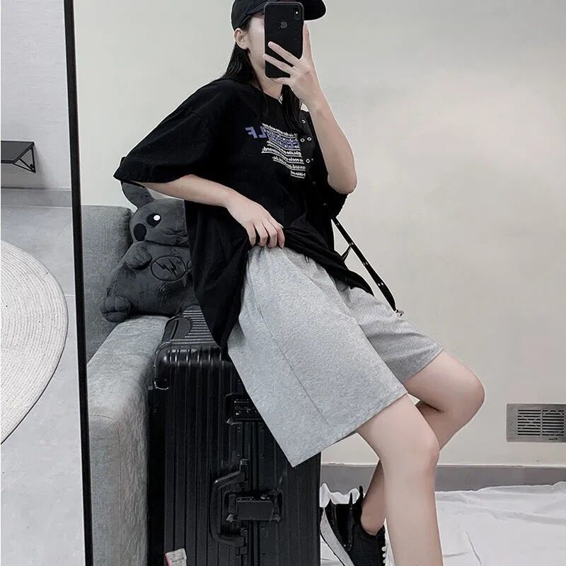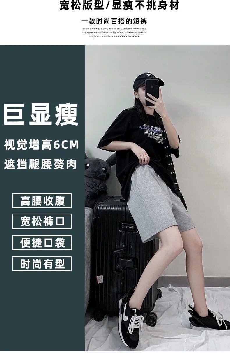 [면] 플러스 사이즈 반바지 여자 여름 한국식 학생 느슨한 높은 허리 넓은 다리 바지 여자 캐주얼 스포츠 바지스토어 가기