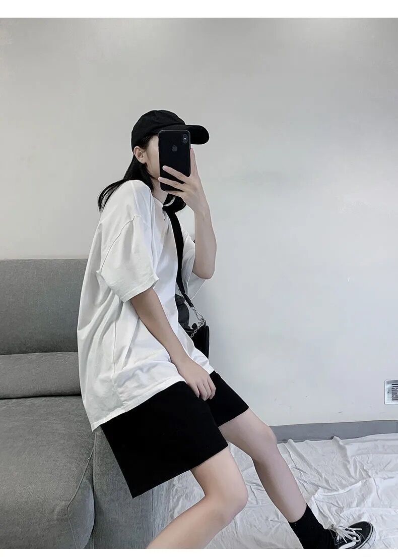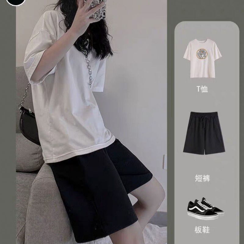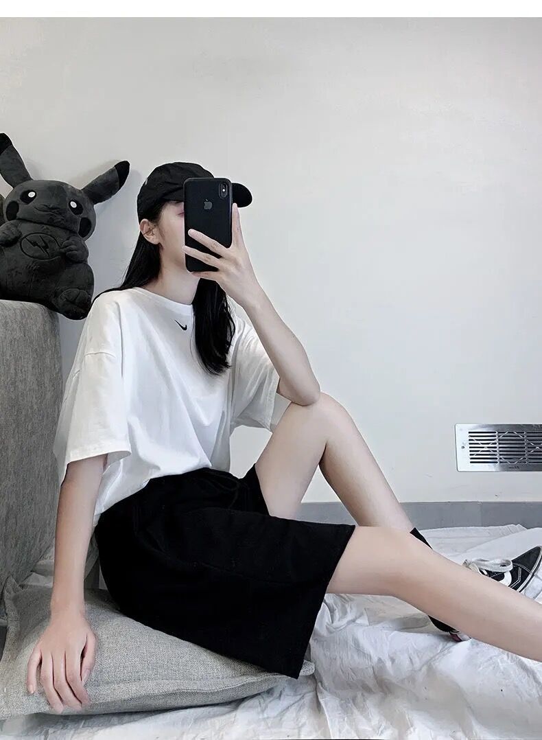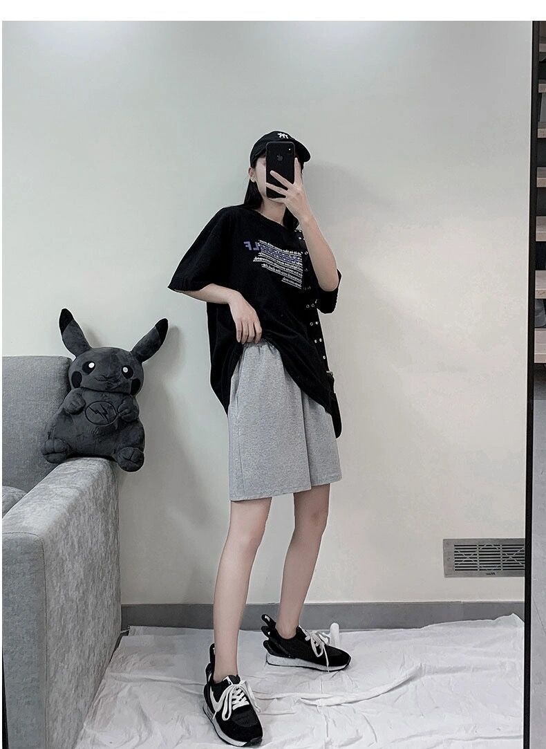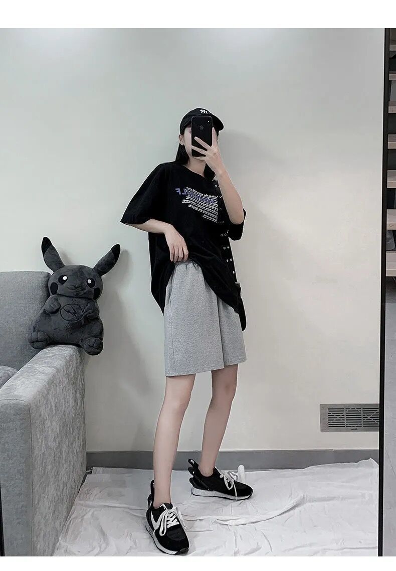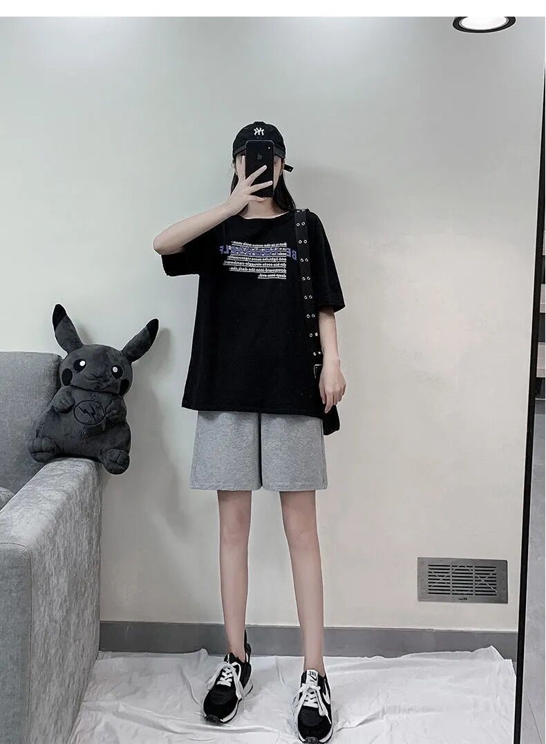 [면] 플러스 사이즈 반바지 여자 여름 한국식 학생 느슨한 높은 허리 넓은 다리 바지 여자 캐주얼 스포츠 바지스토어 가기