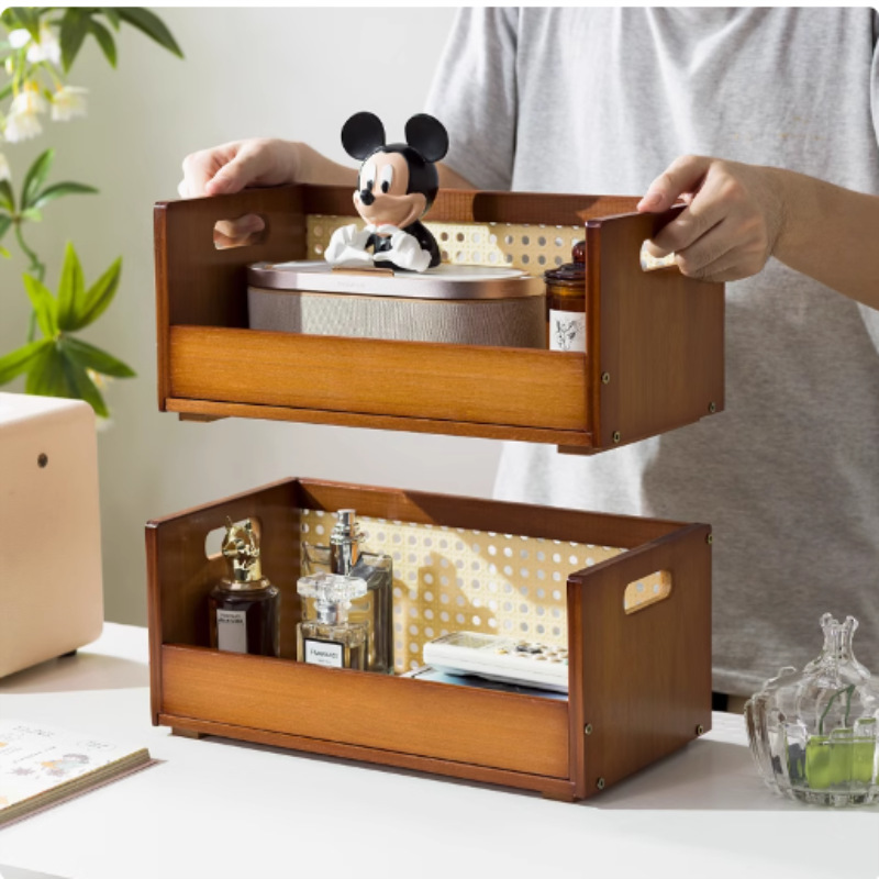 나무 쌓을 수있는 저장 상자 솔리드 우드 분할 저장 랙 데스크탑 잡화 마감 상자 주방 식기 디스펜서