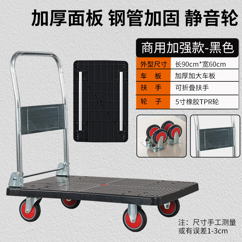 작은 트레일러 트롤리 트롤리 트롤리 트롤리를 취급하는 쇼핑 트롤리 접이식 4 륜 음소거 플랫 베드 트럭 이동 상품