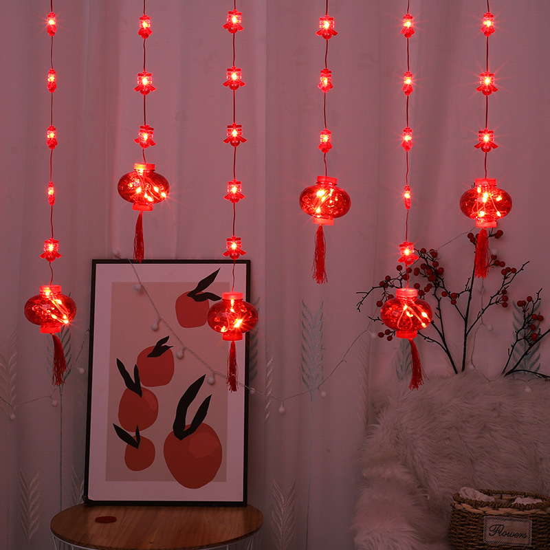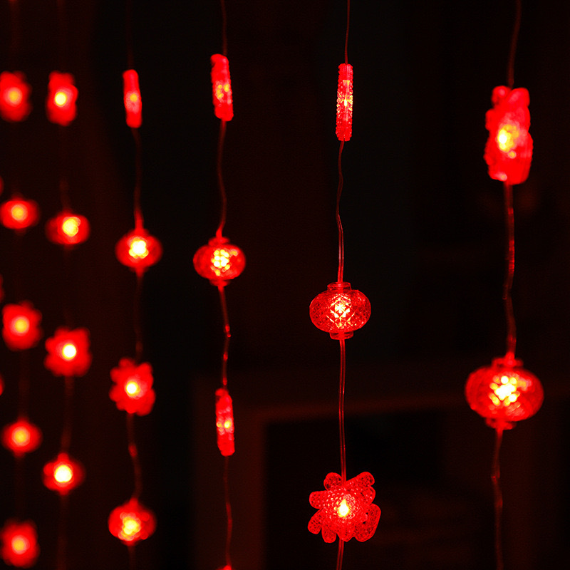 2025 등불 축제 붉은 등불 장식 조명 웨딩 배열 집들이 조명 깜박이는 조명 창 새해 커튼 조명