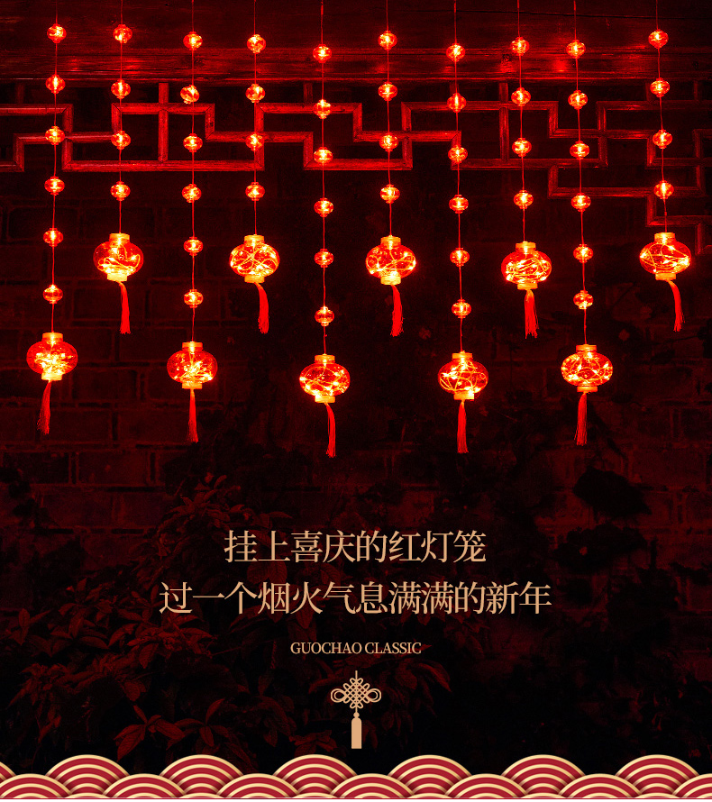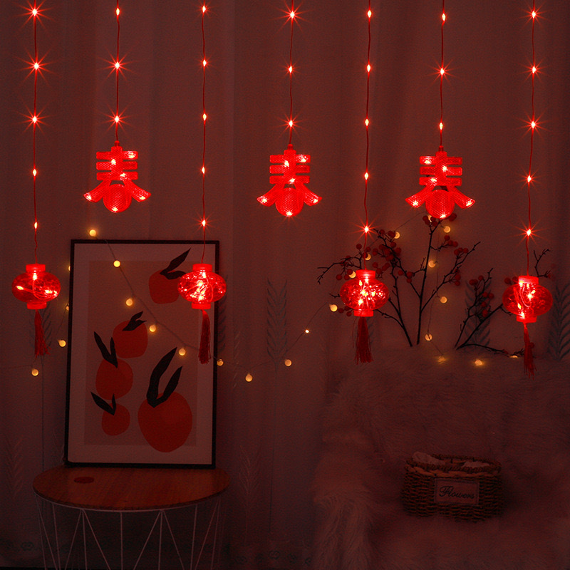 2025 등불 축제 붉은 등불 장식 조명 웨딩 배열 집들이 조명 깜박이는 조명 창 새해 커튼 조명스토어 가기