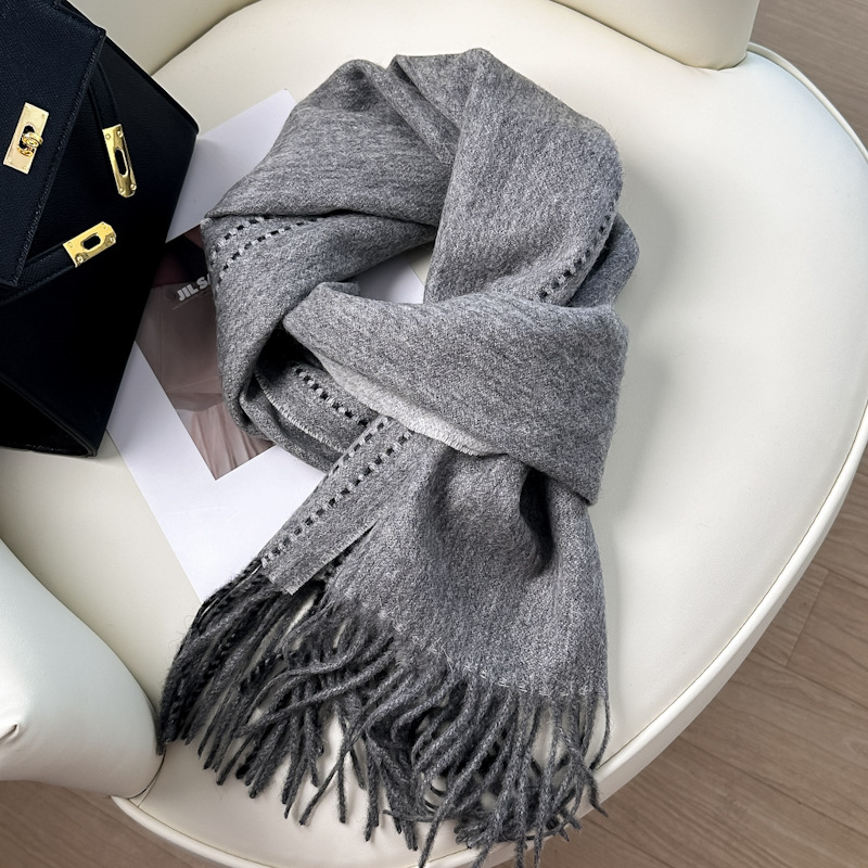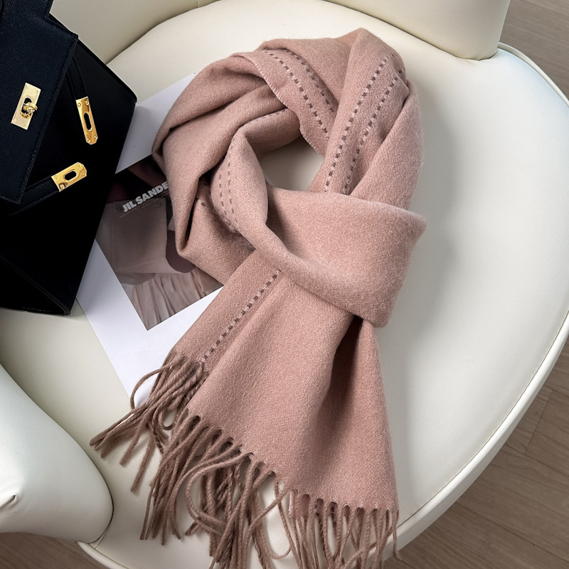 올 매치 100% WOOL 퓨어 울 스카프 여성 솔리드 컬러 스티치 디자인 양면 울 목도리 겨울 따뜻한 목