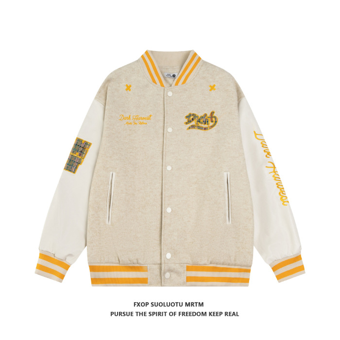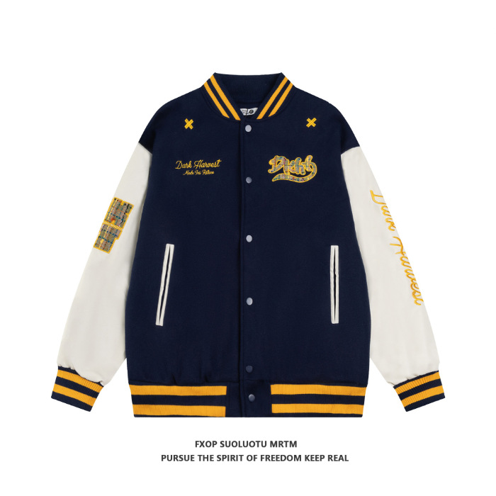 아메리칸 스타일 레트로 컬러 블록 편지 인쇄 야구 세트 남녀 트렌디 브랜드 루즈 캐주얼 재킷 코트