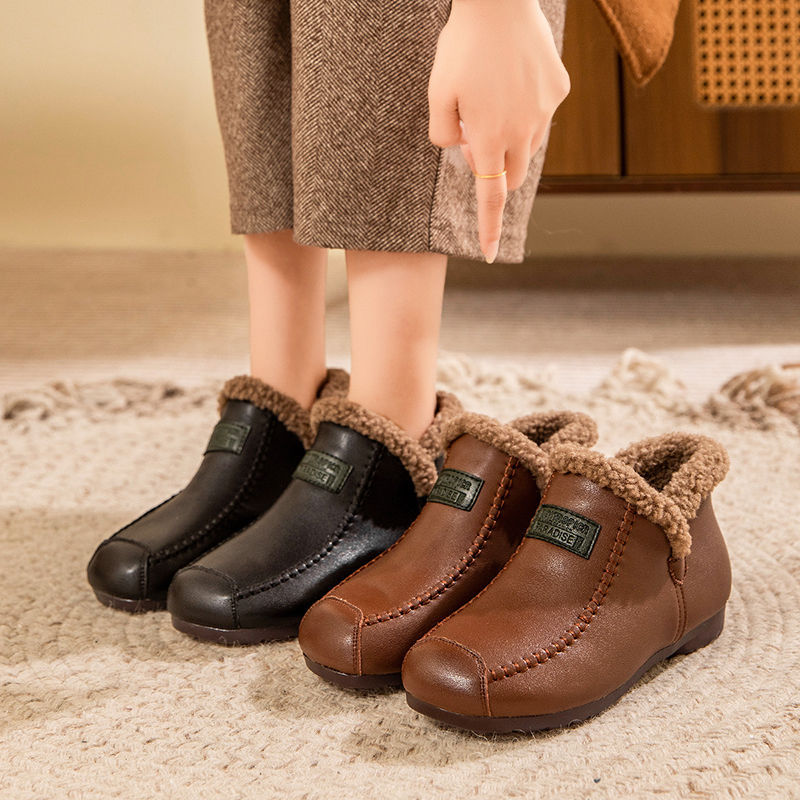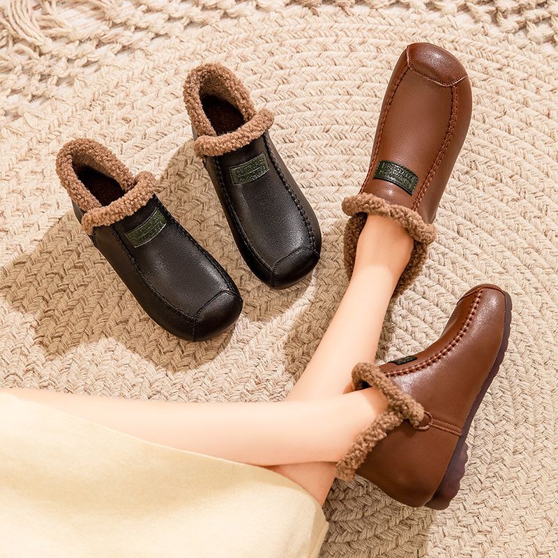 폭발성 기모 엄마 코튼 신발 소프트 단독 내구성 마오 마오 신발 따뜻한 방수 쇼트 부츠 올매치 미끄럼 방지 편안한 가죽 부츠