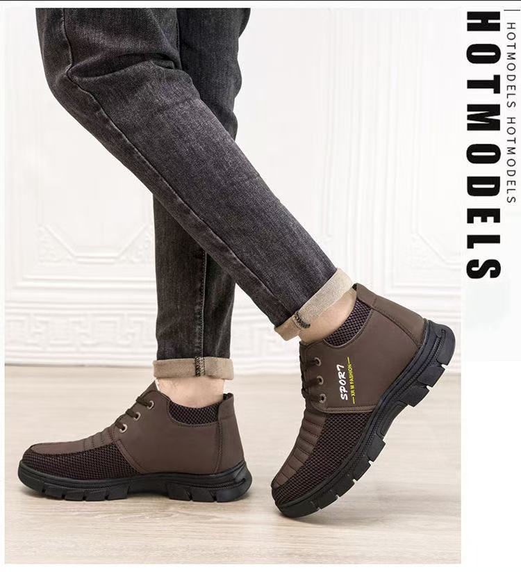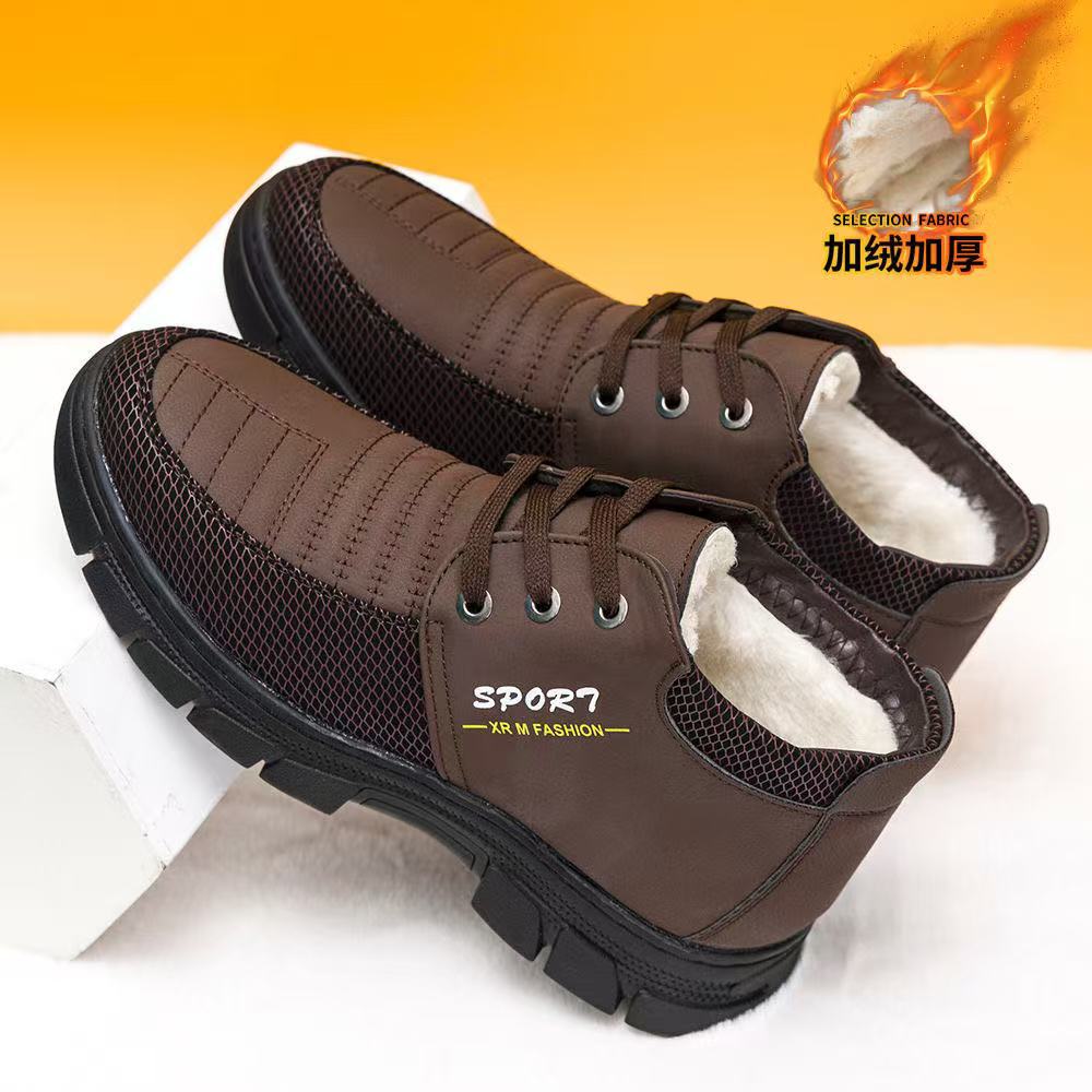 겨울 기모 두꺼운 남성의 새로운 캐주얼 하이 탑 따뜻한 코튼 신발 중년 및 노인 스노우 아빠를위한 미끄럼 방지 남성 신발