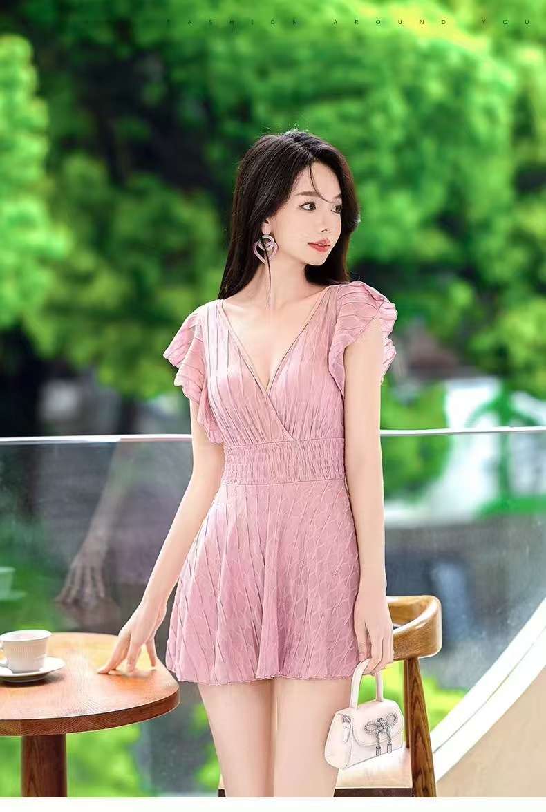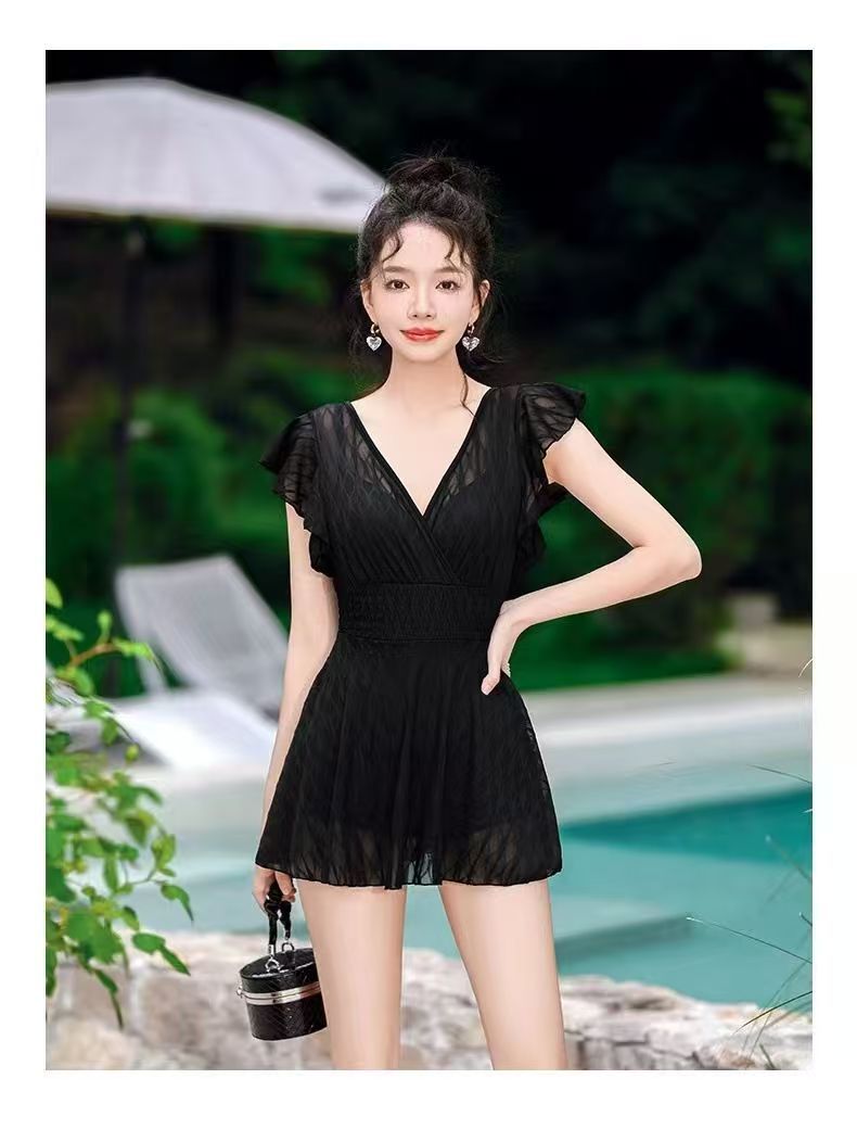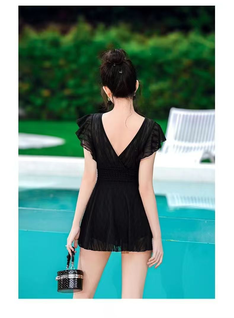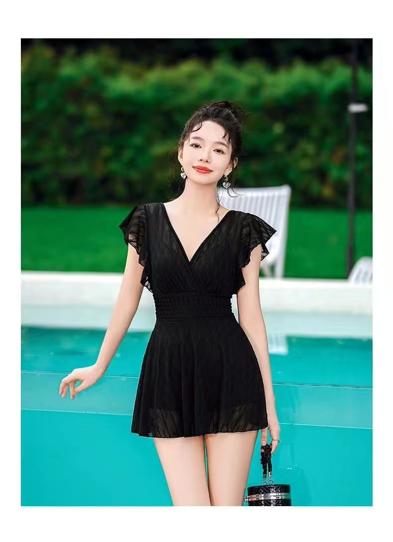 2025 새로운 원피스 짧은 소매 단색 보수적 스커트 수영복 013스토어 가기