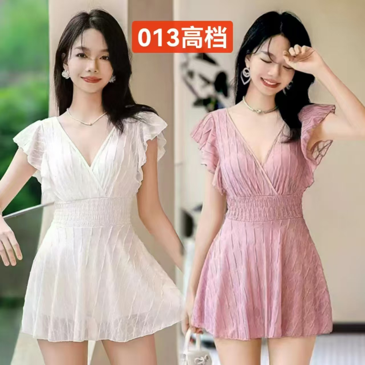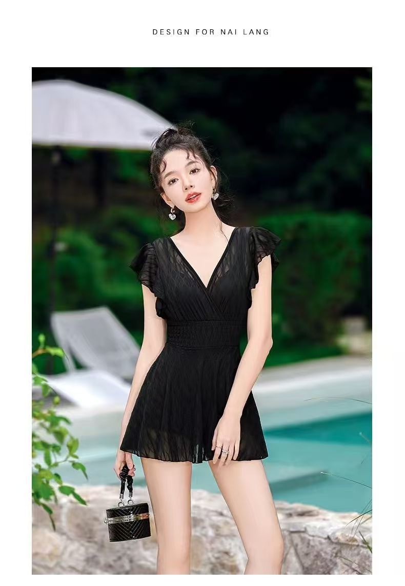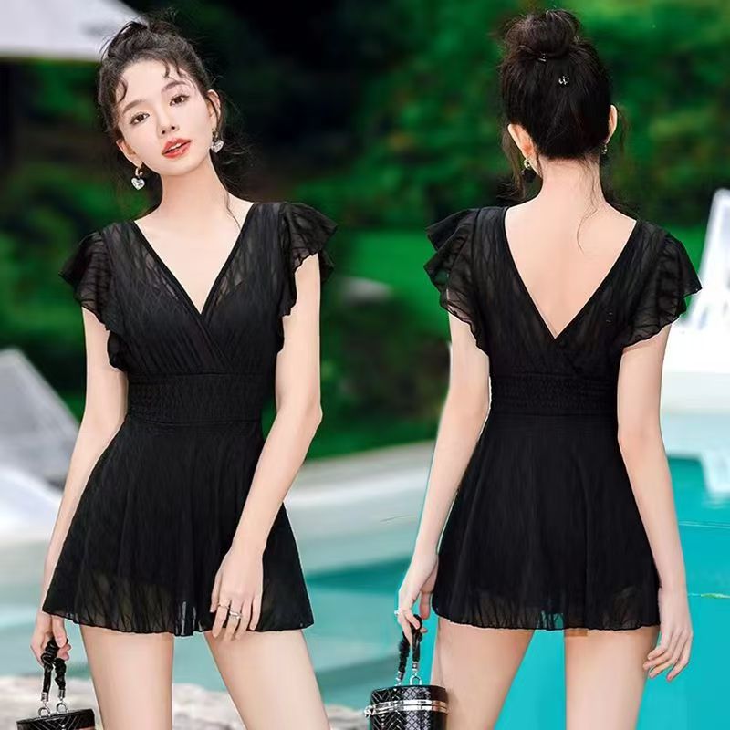 2025 새로운 원피스 짧은 소매 단색 보수적 스커트 수영복 013스토어 가기