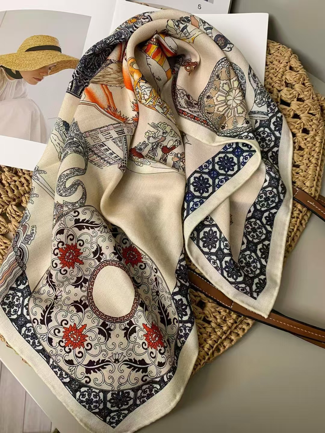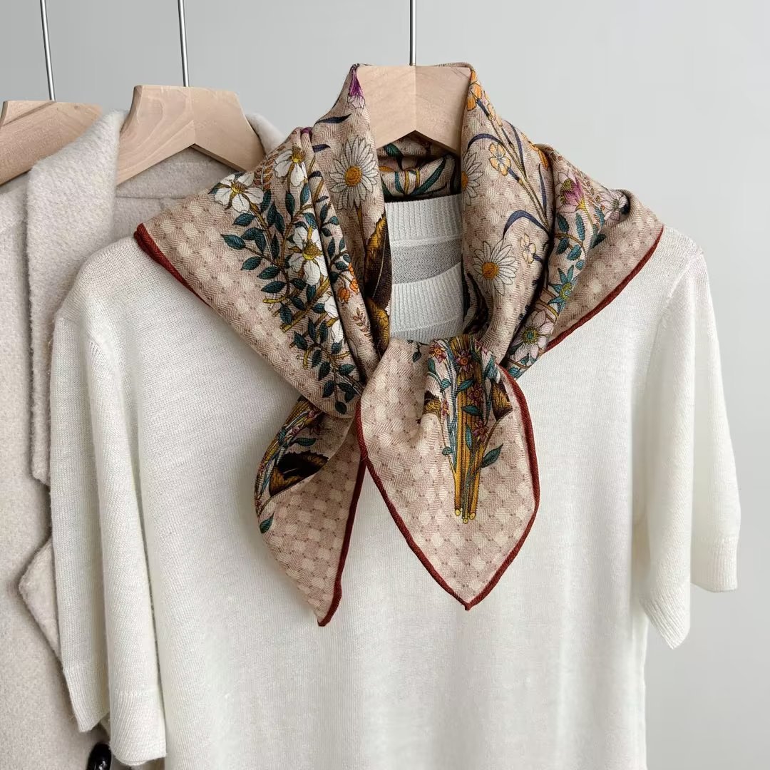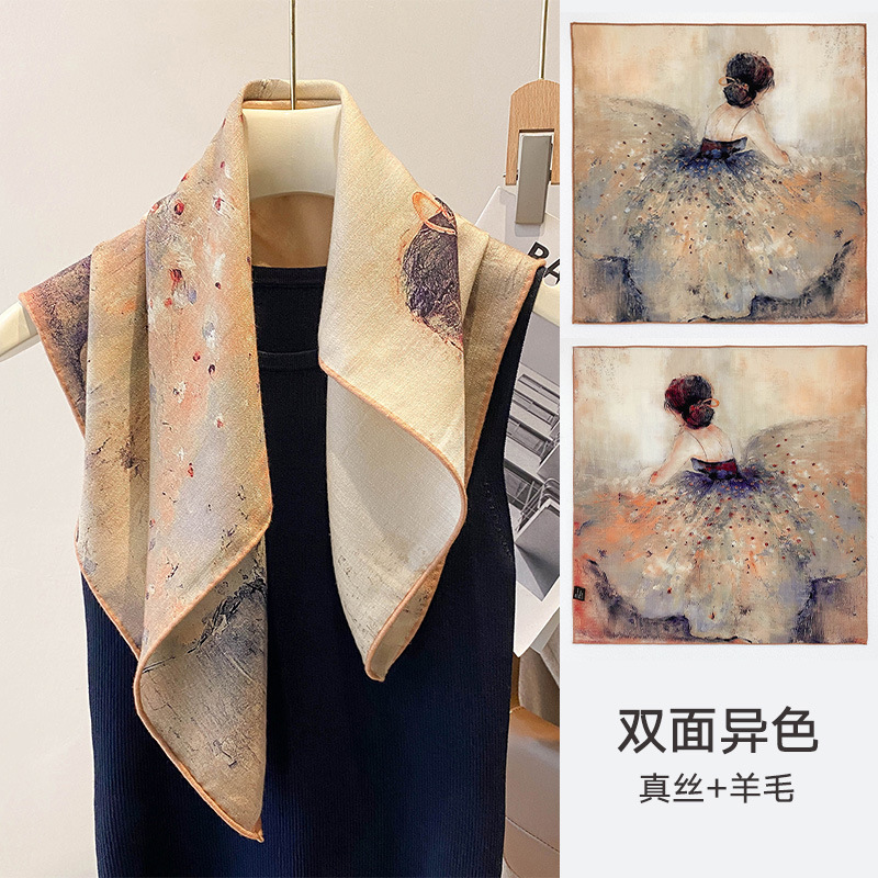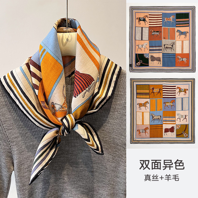 봄과 가을 질감 양면 실크 울 스카프 여성의 가을과 겨울 실크 울 70 스퀘어 타월 따뜻한 이중 목적 여성의 올 매치 기질스토어 가기