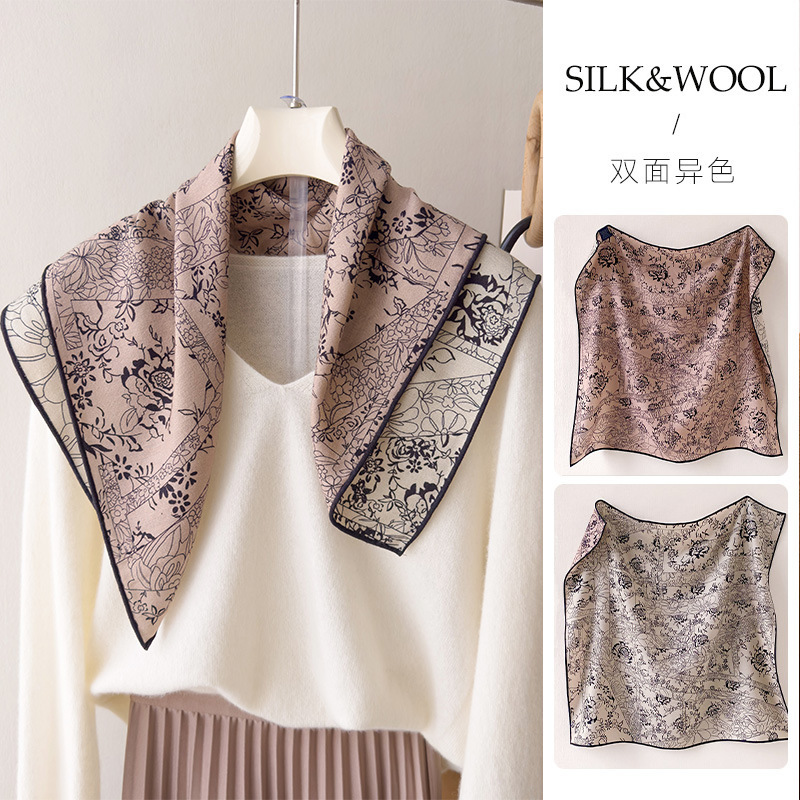 봄과 가을 질감 양면 실크 울 스카프 여성의 가을과 겨울 실크 울 70 스퀘어 타월 따뜻한 이중 목적 여성의 올 매치 기질