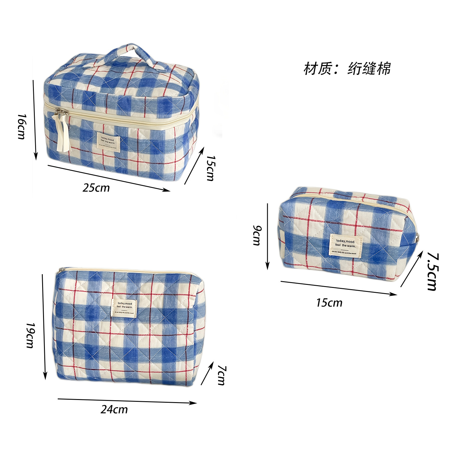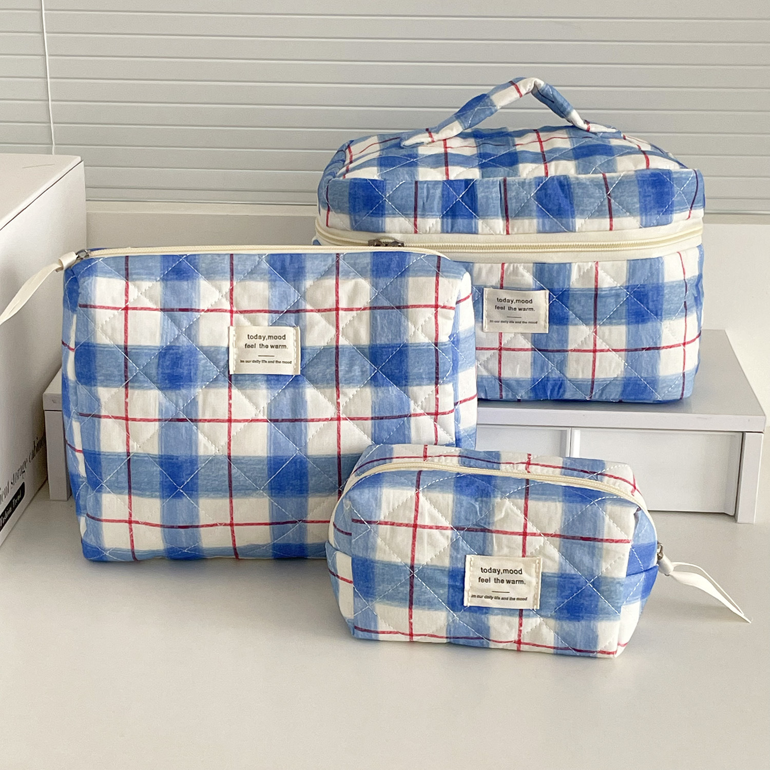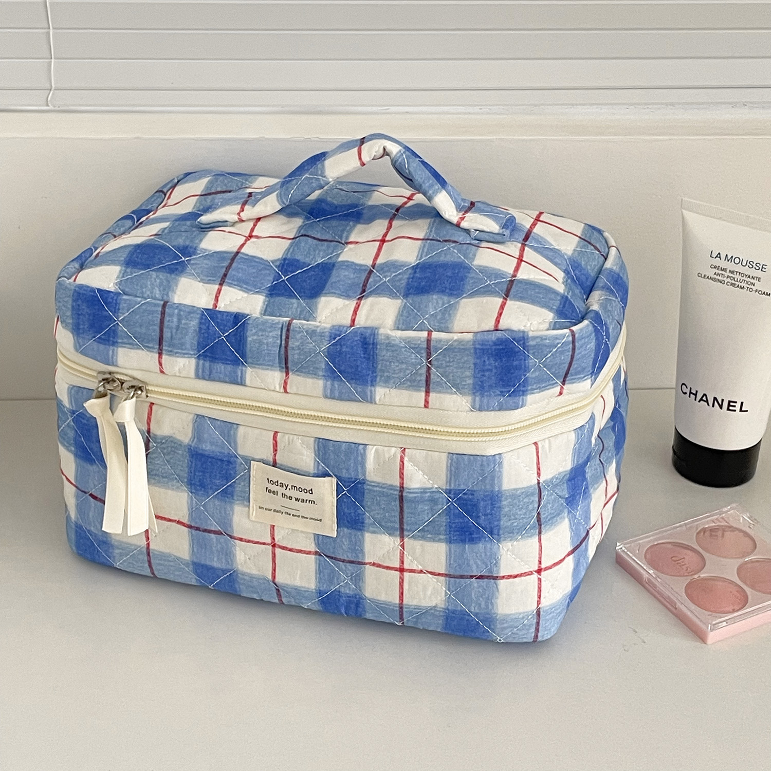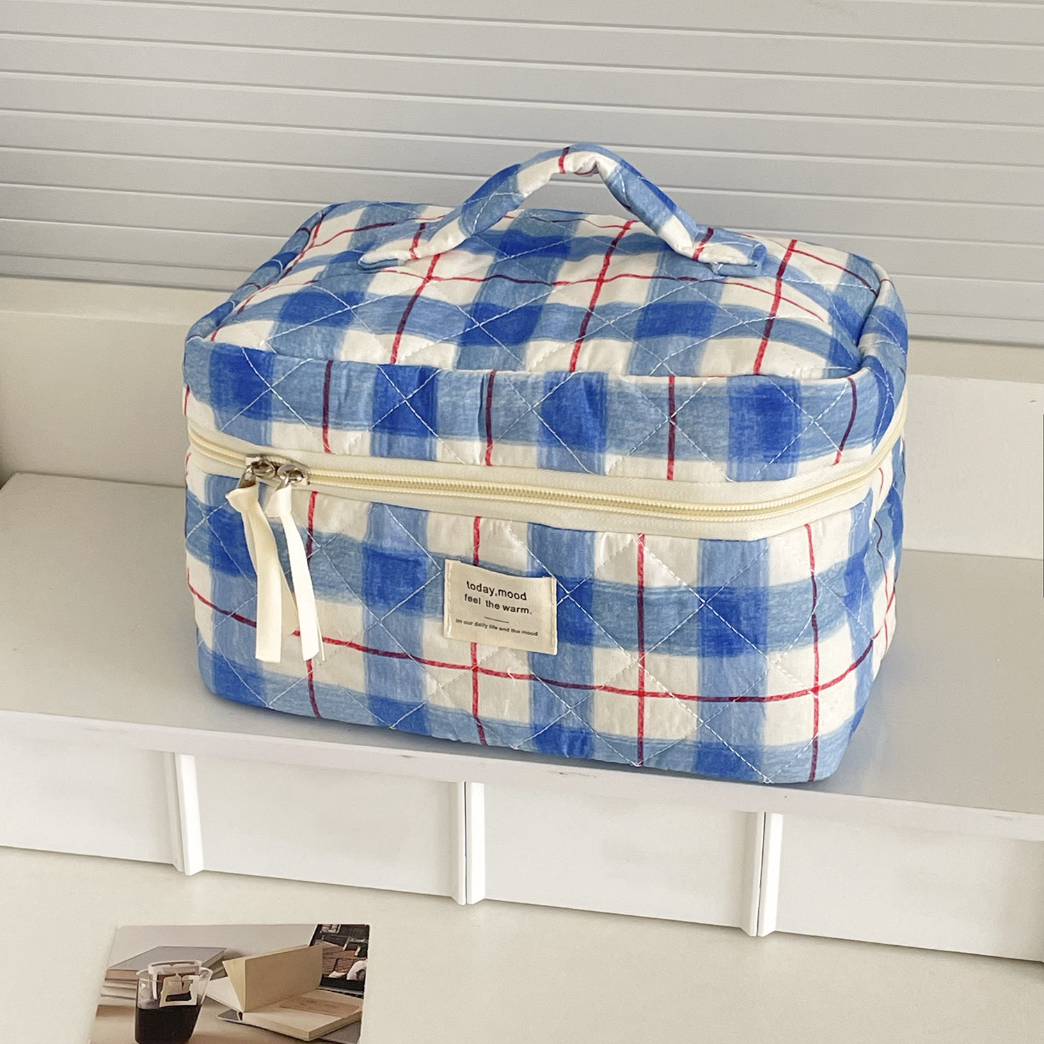 • 레트로 레드 라인 블루 체크-[화장품 가방]