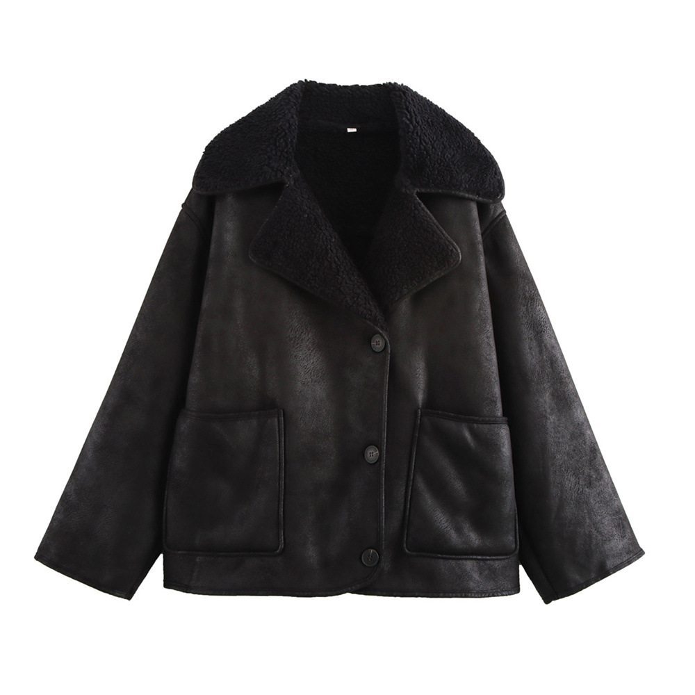 아마존 도매 가을 새로운 여성 올 매치 옷깃 싱글 브레스트 롱 슬리브 포켓 양면 재킷 코트 Y5