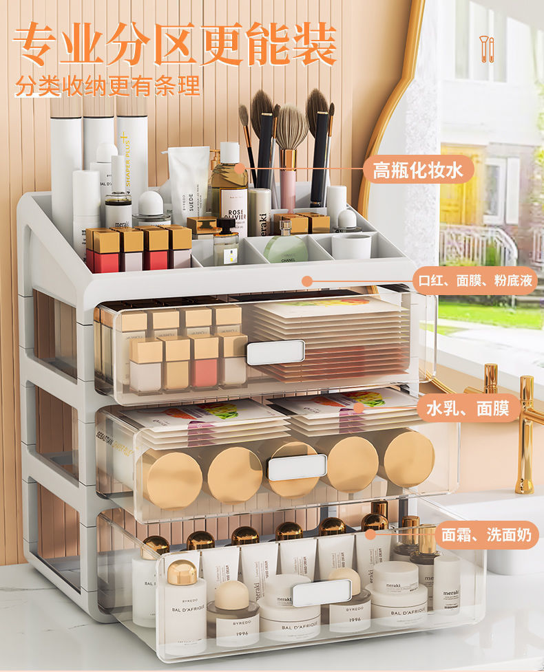 화장품 보관 상자 투명한 데스크탑 서랍 유형 방진 스킨 케어 드레싱 테이블 대용량 기숙사 메이크업 박스스토어 가기