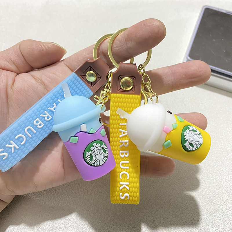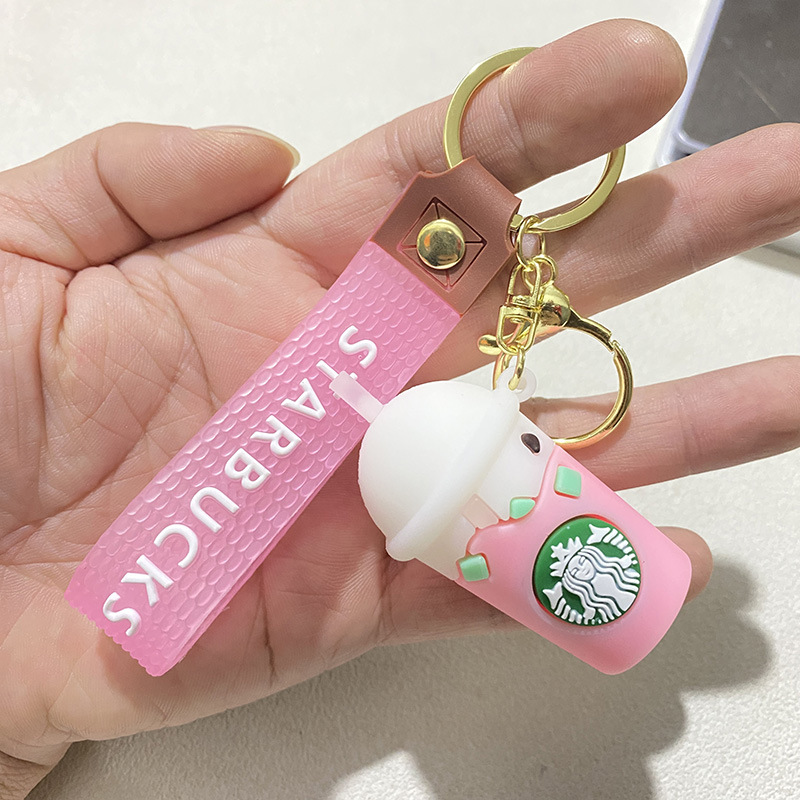 국경 스타 벅스 키 체인 인형 자동차 펜던트 인형 기계 작은 선물 가방 우유 티 컵 키 체인 도매