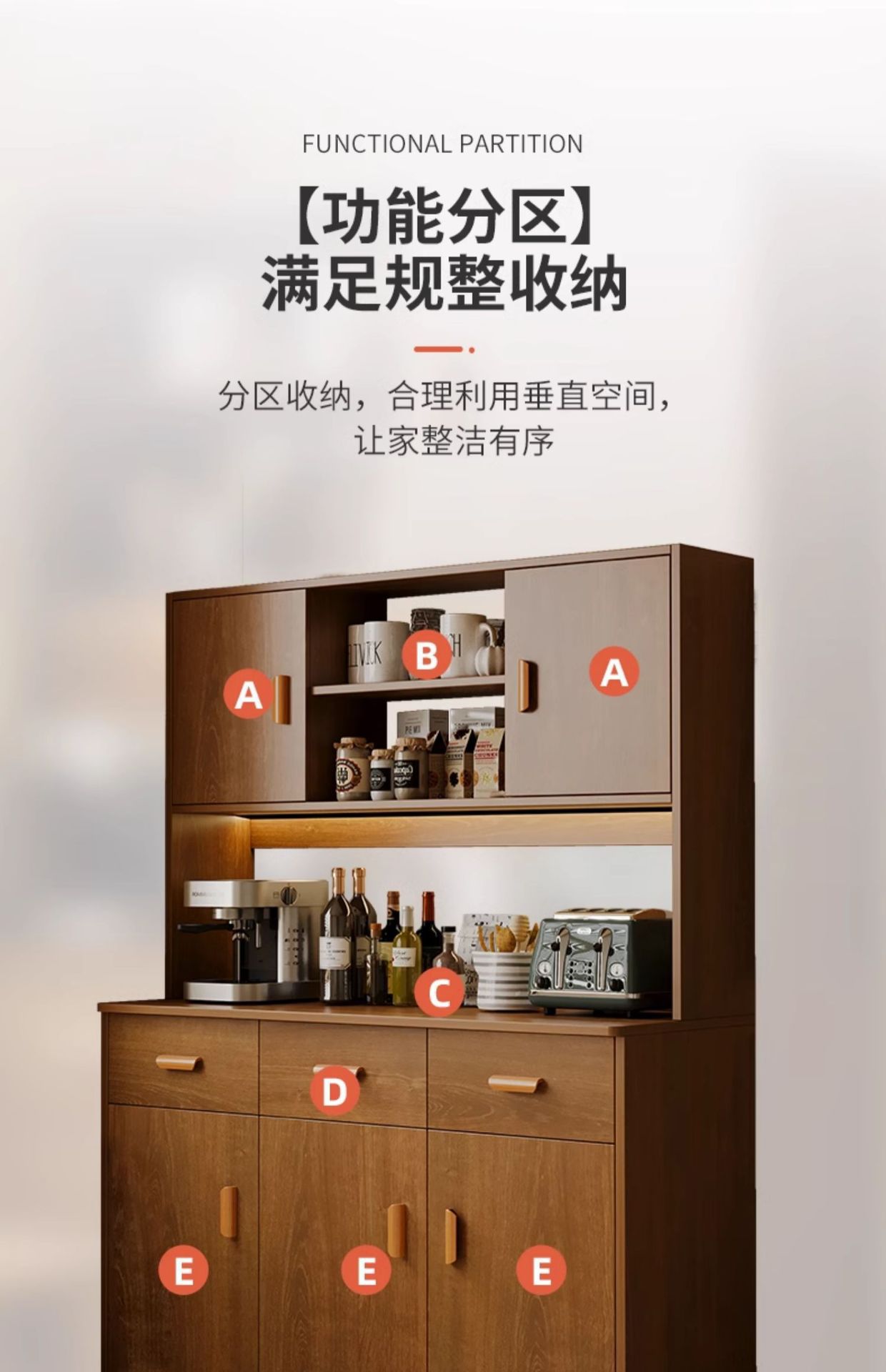 餐边柜靠墙一体橱柜现代简约客厅收纳柜仿实木轻奢酒柜置物储物柜