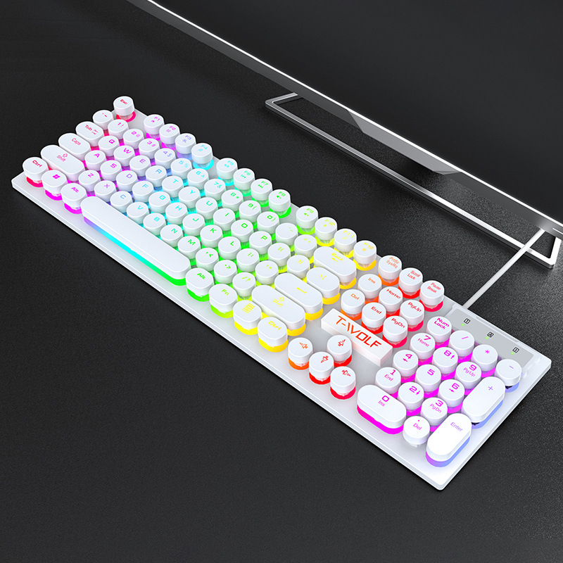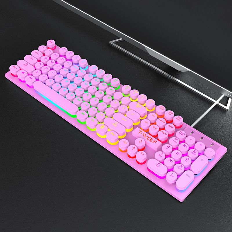 T-WOLF Thunderwolf T80 게임 키보드 빛나는 펑크 레트로 라운드 키 캡 전자 스포츠 키보드 크로스 핑크 유선