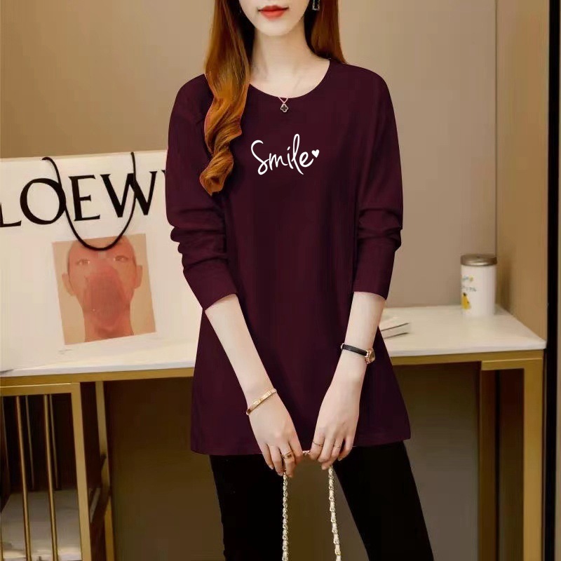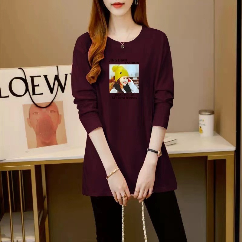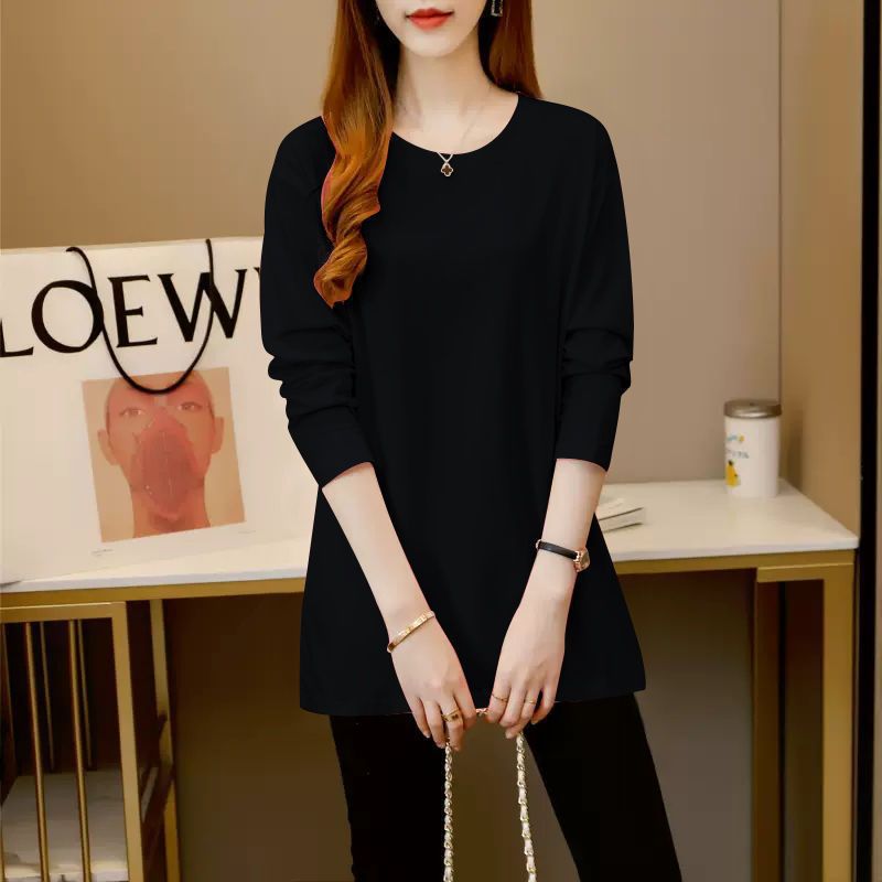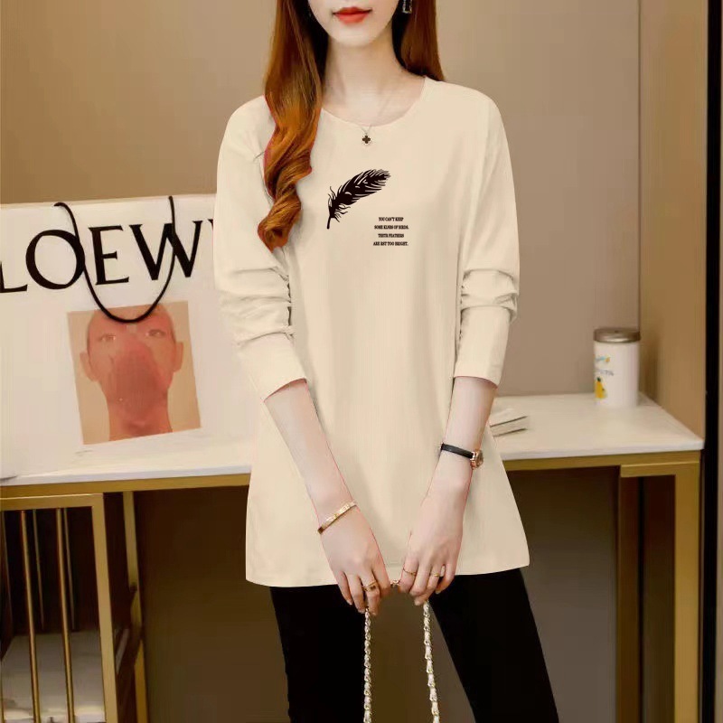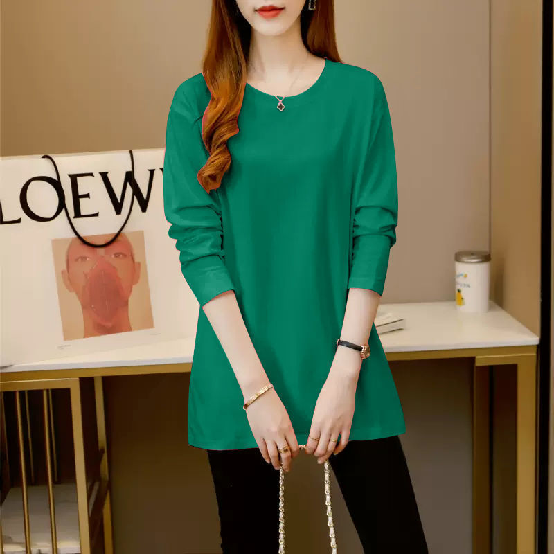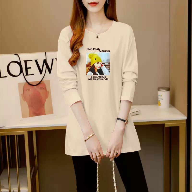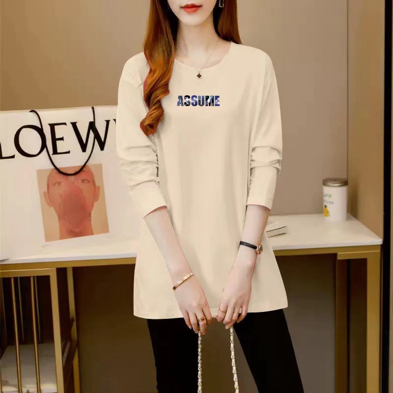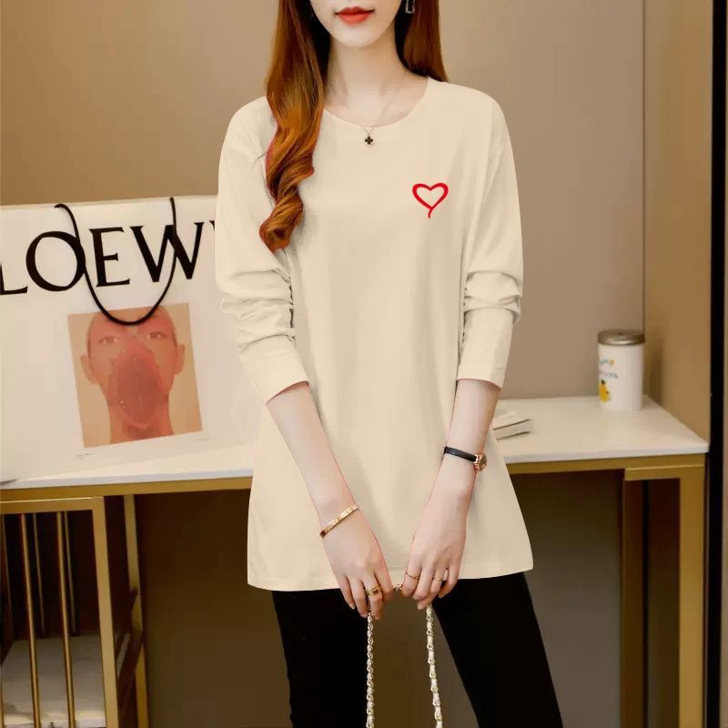 2023 년 봄 · 가을 신면 중장 긴팔 티셔츠 여성용 한국식 엉덩이 커버 롱 루저 베이스 탑