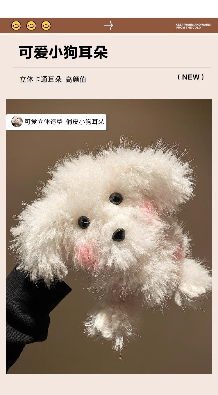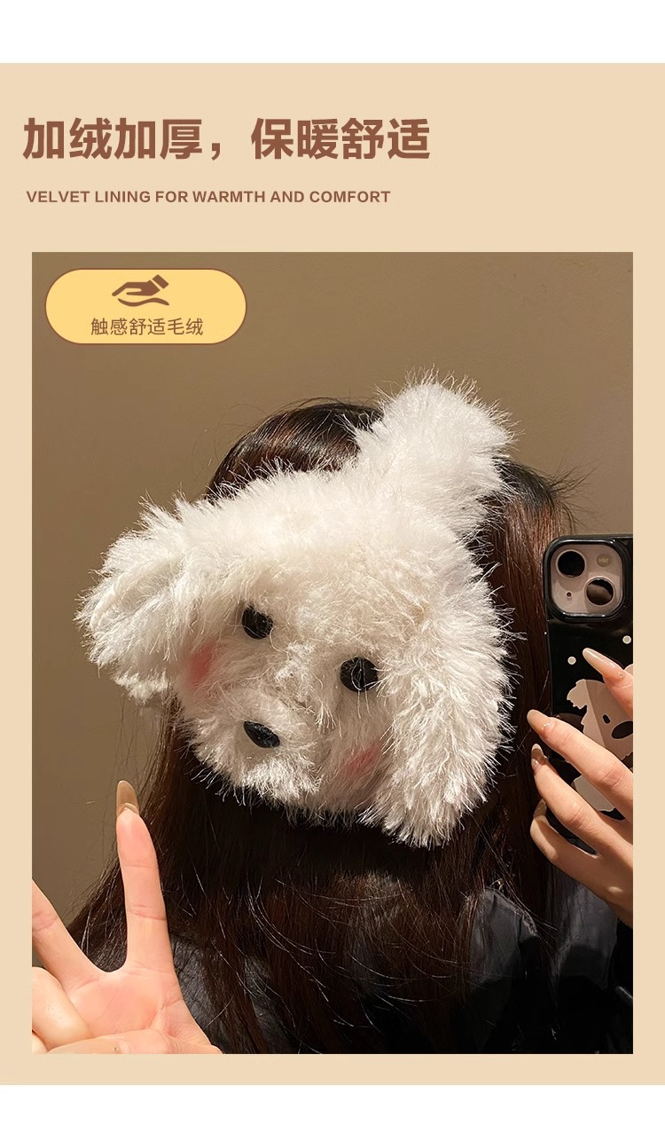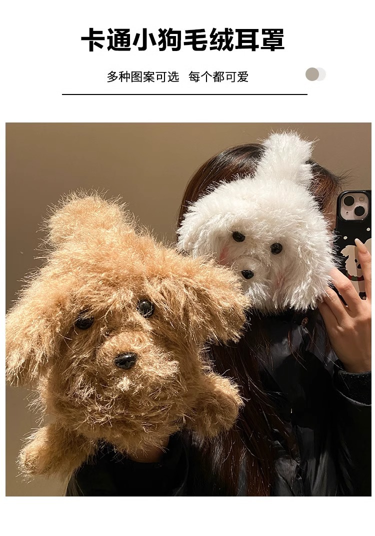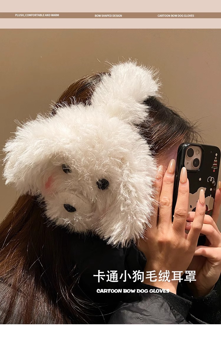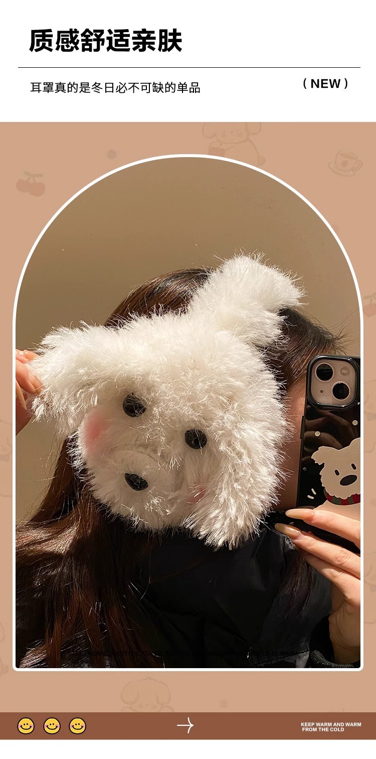 귀여운 강아지 봉제 귀마개 여성 2024 겨울 모피 귀마개가 두껍게 된 따뜻한 방한 승마 귀마개스토어 가기