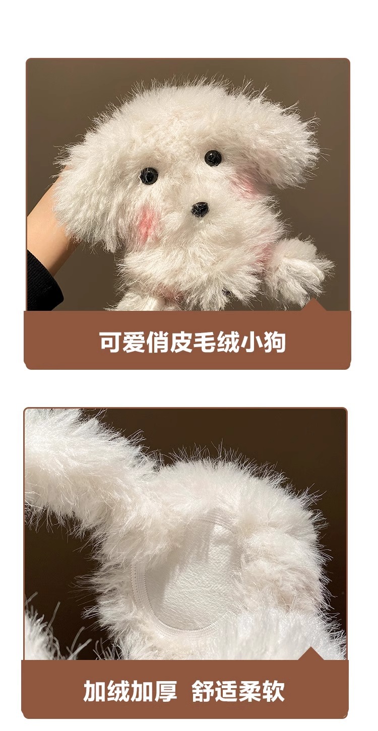 귀여운 강아지 봉제 귀마개 여성 2024 겨울 모피 귀마개가 두껍게 된 따뜻한 방한 승마 귀마개