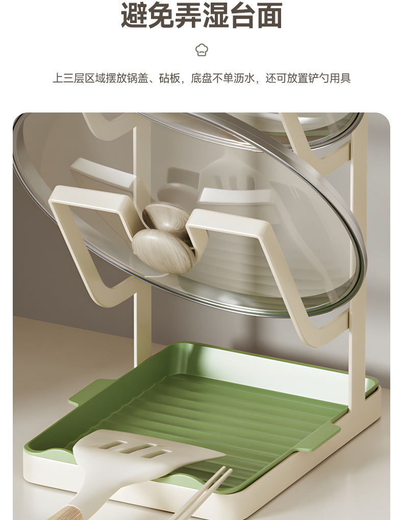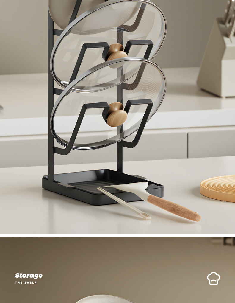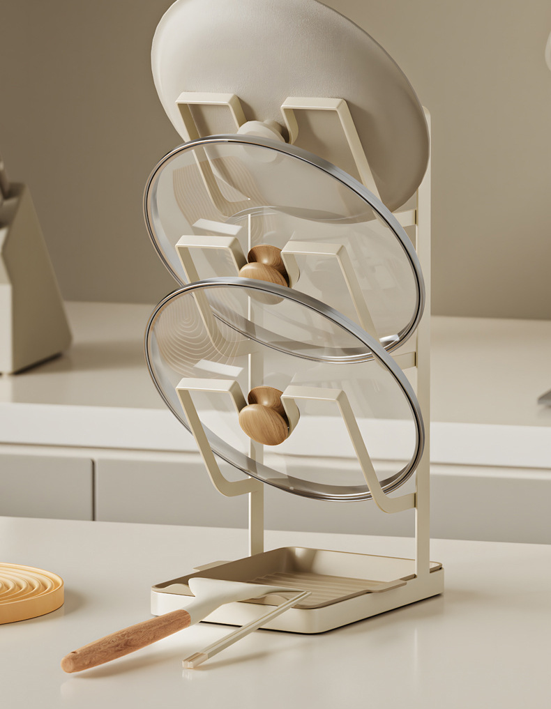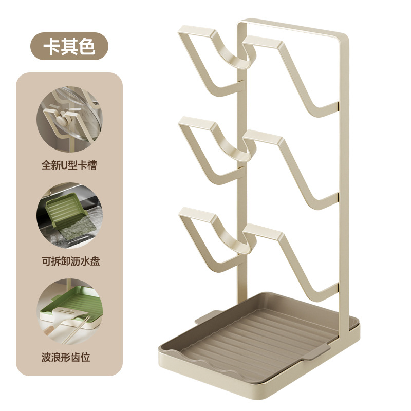 주방 냄비 커버 랙 배수 플레이트 냄비 커버 아티팩트 다층 국경 스토리지가있는 다기능 스토리지 포트 삽 랙