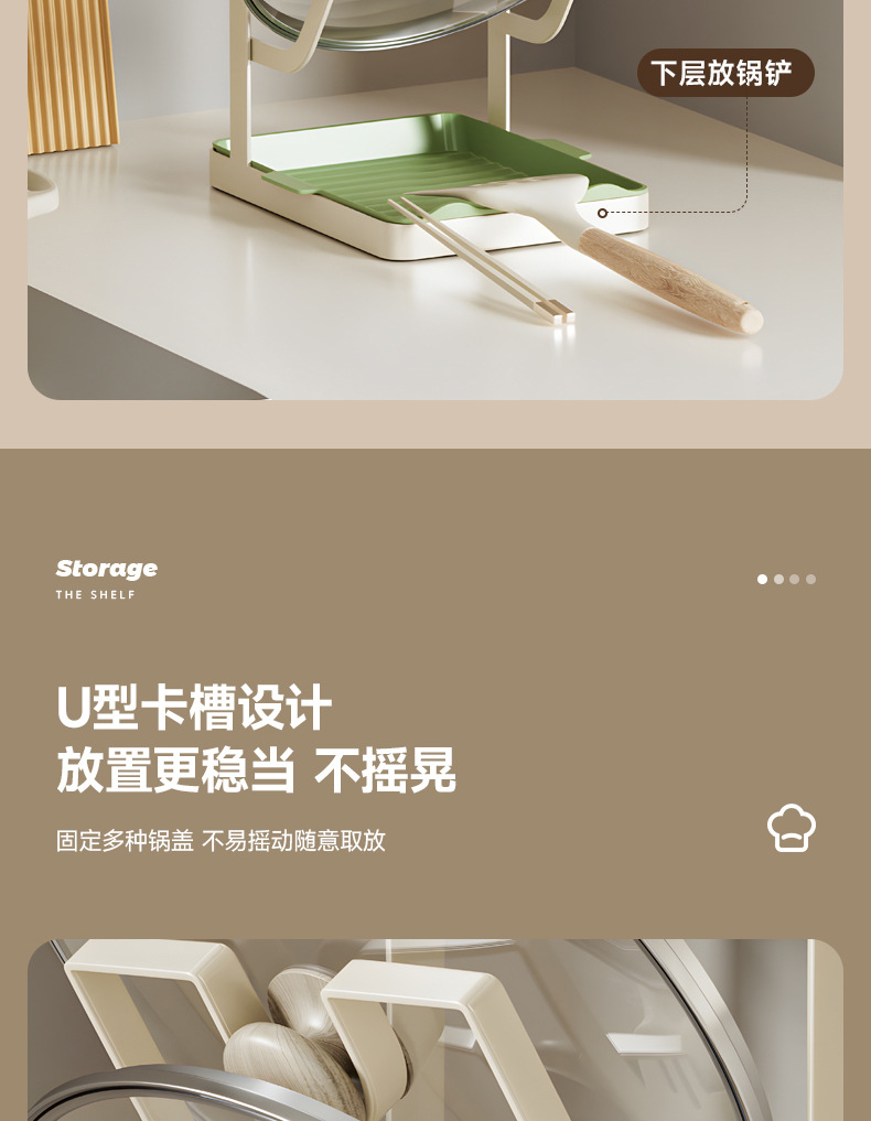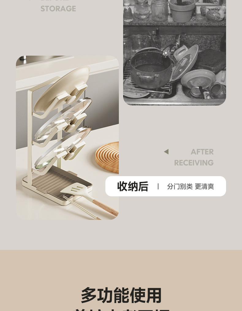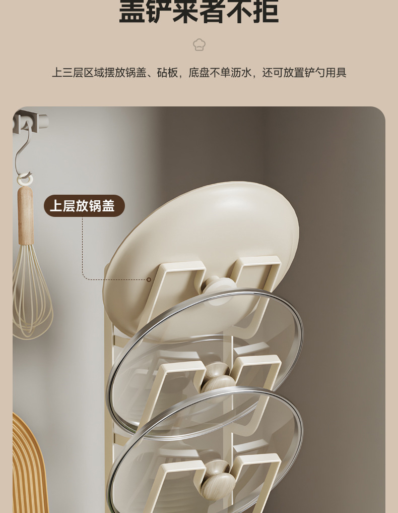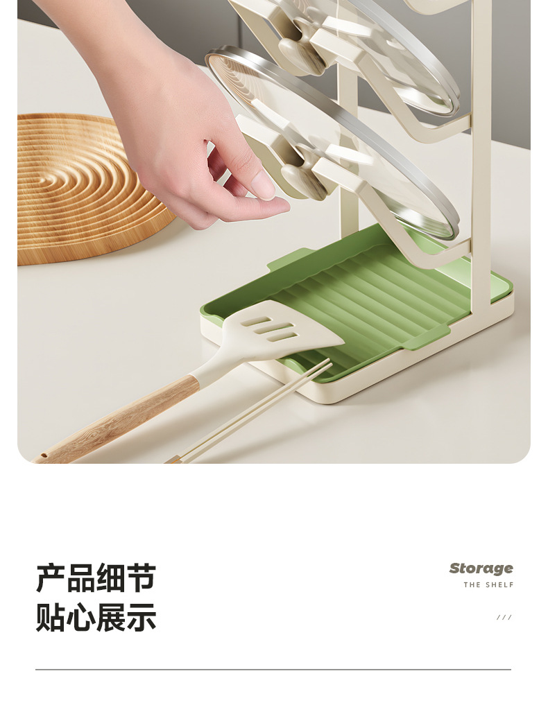주방 냄비 커버 랙 배수 플레이트 냄비 커버 아티팩트 다층 국경 스토리지가있는 다기능 스토리지 포트 삽 랙