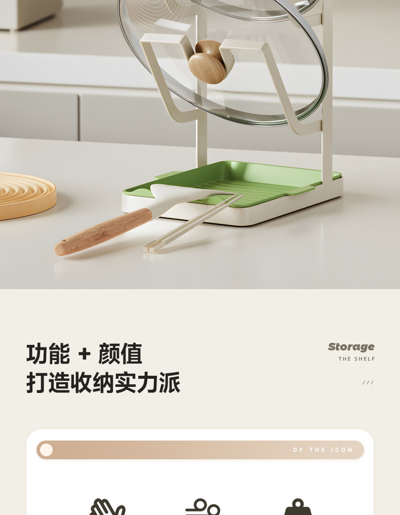 주방 냄비 커버 랙 배수 플레이트 냄비 커버 아티팩트 다층 국경 스토리지가있는 다기능 스토리지 포트 삽 랙스토어 가기