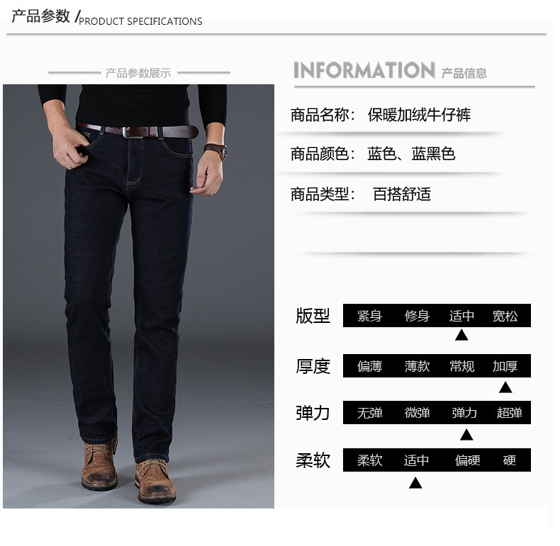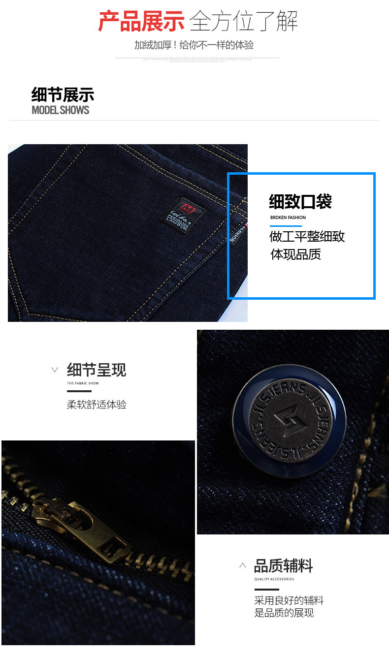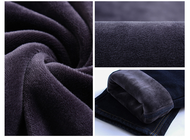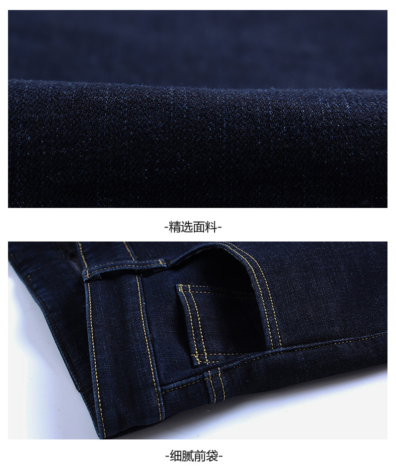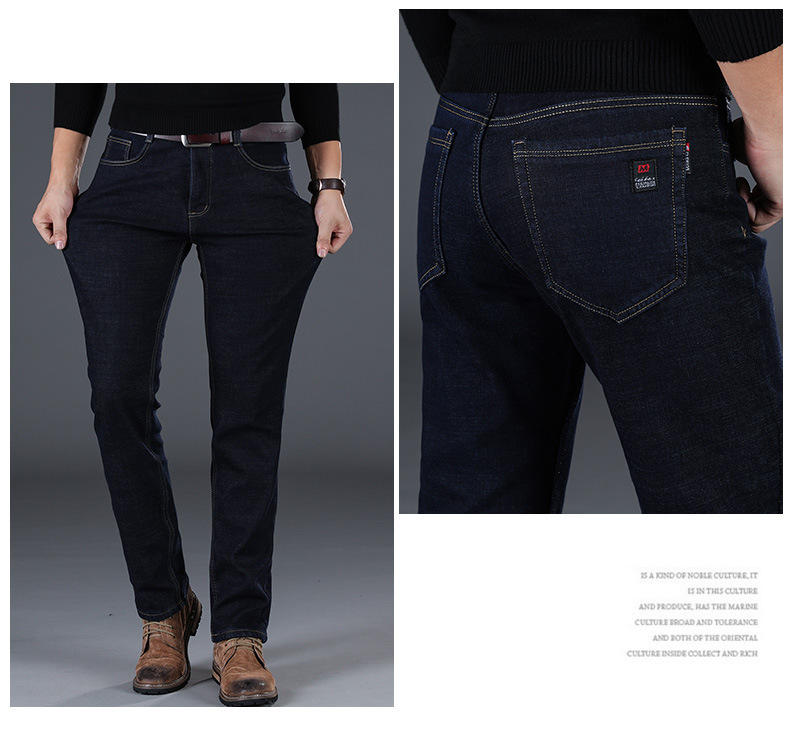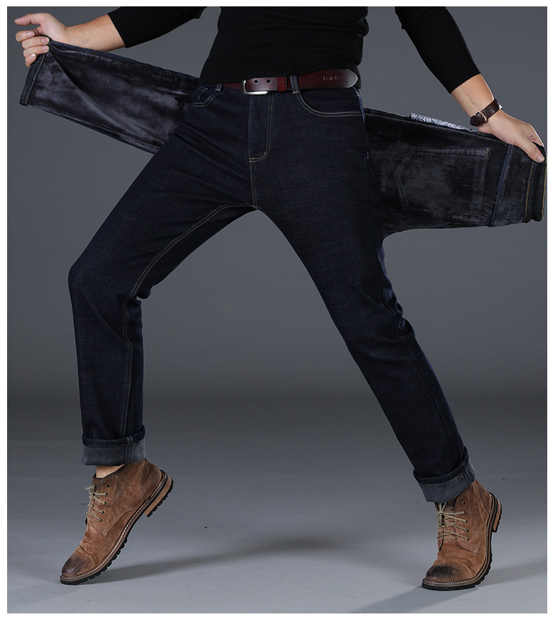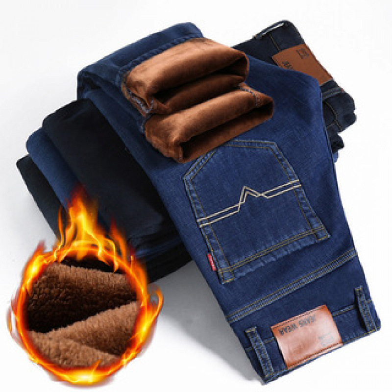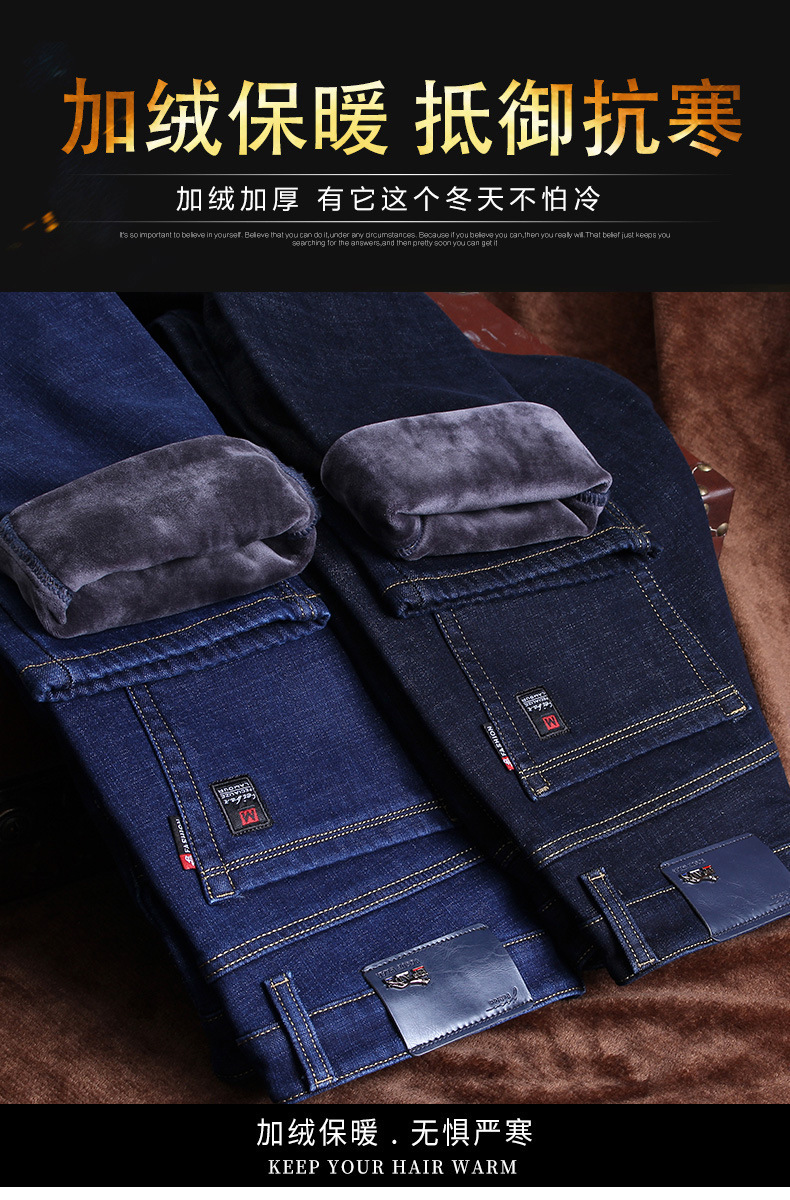 겨울 하이 엔드 기모 두꺼운 청바지 남성용 루즈 스트레이트 하이 웨이스트 남성용 코튼이있는 중년 캐주얼 롱 바지스토어 가기