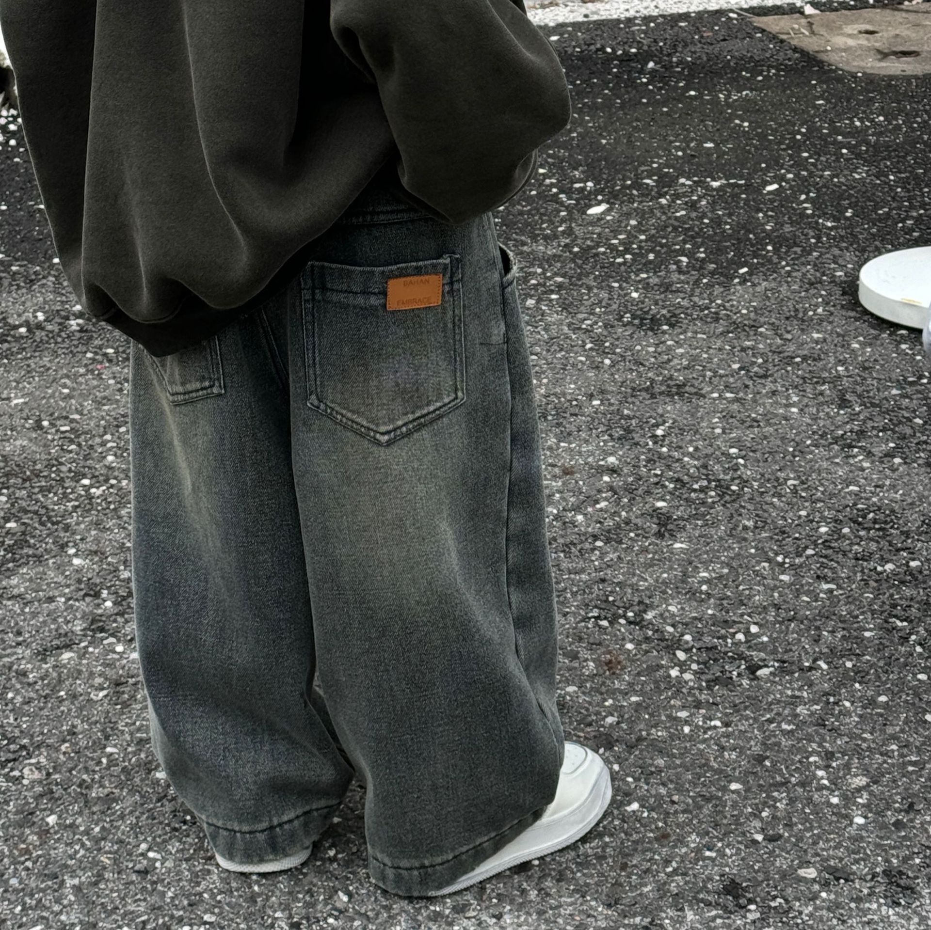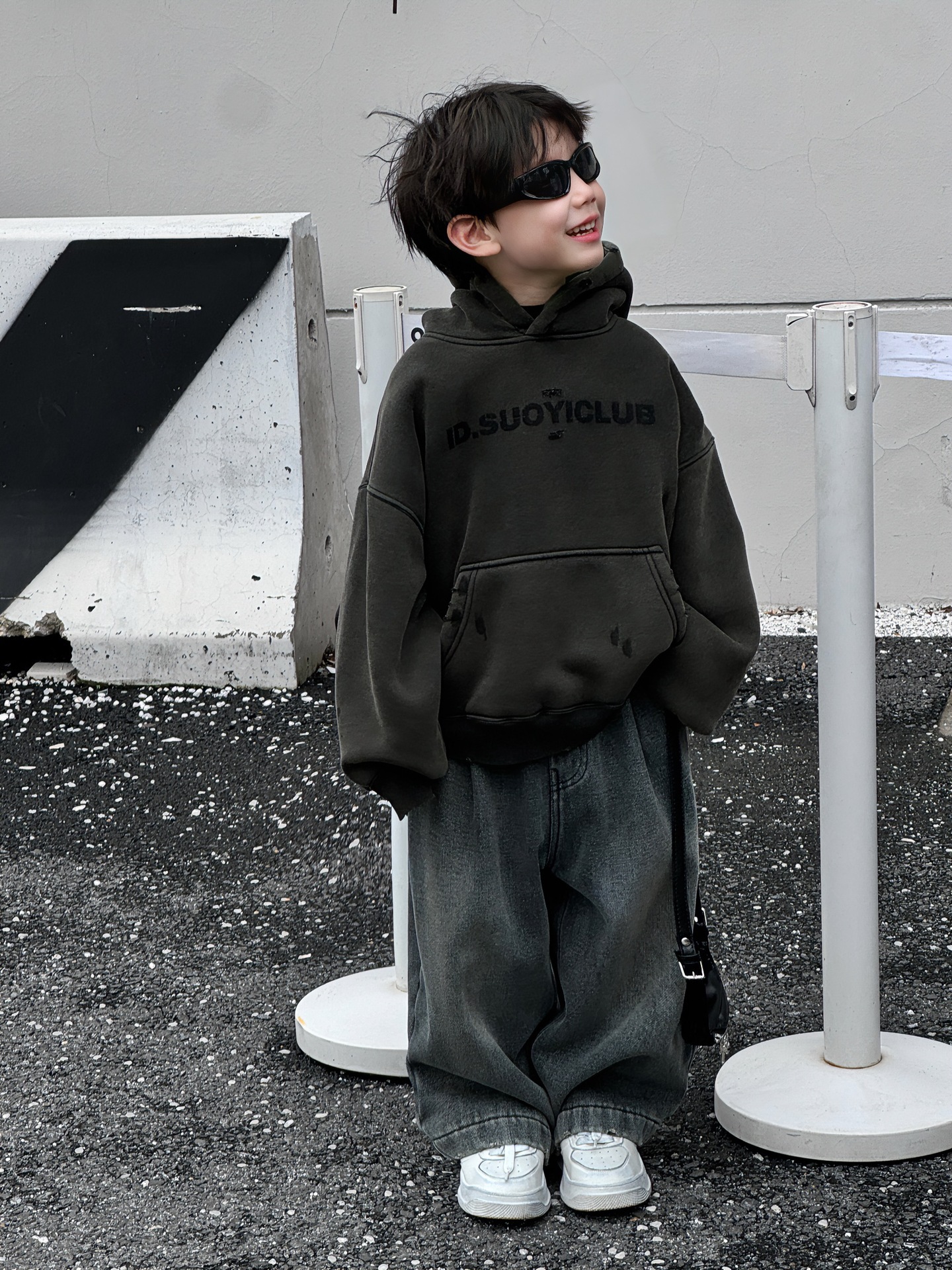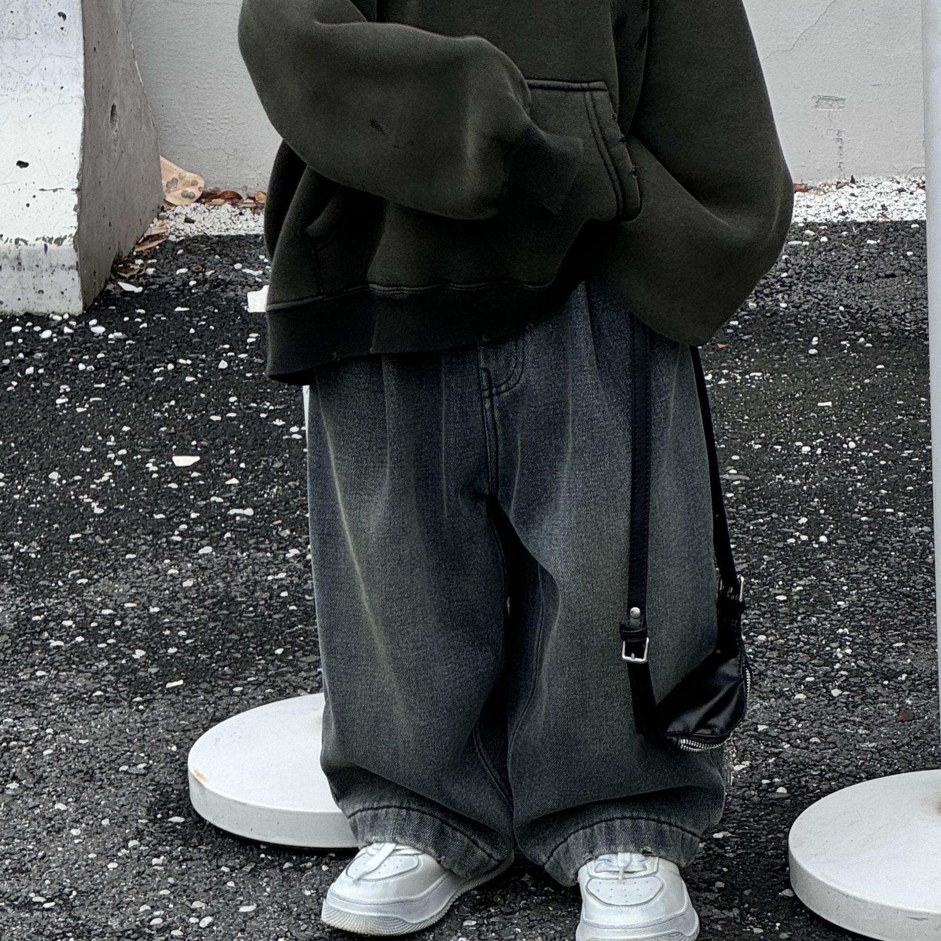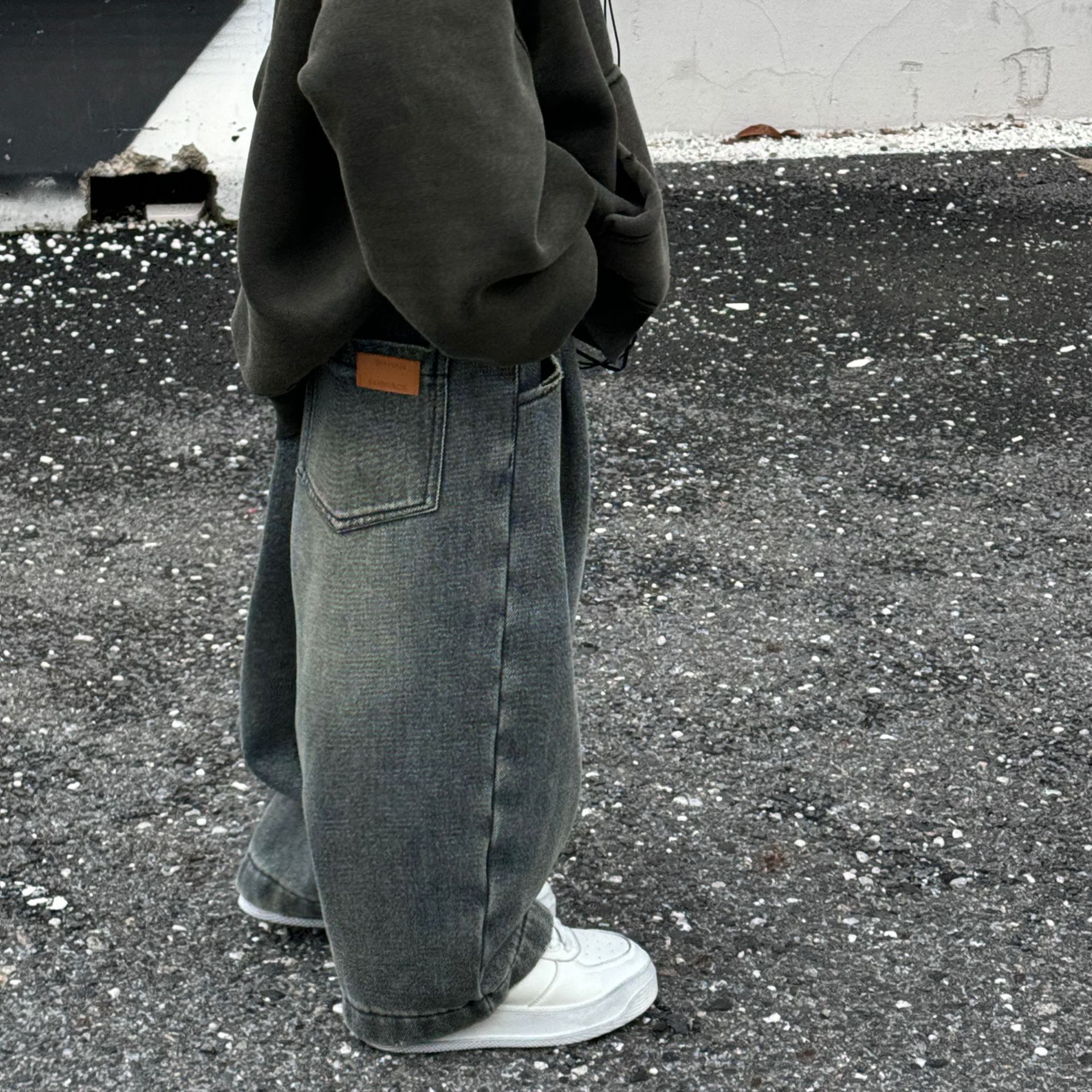어린이 가을 겨울 착용 기모 청바지 어린이 바지 2024 새 소년 소녀 한국 캐주얼 한 조각 벨벳 캐주얼 바지스토어 가기