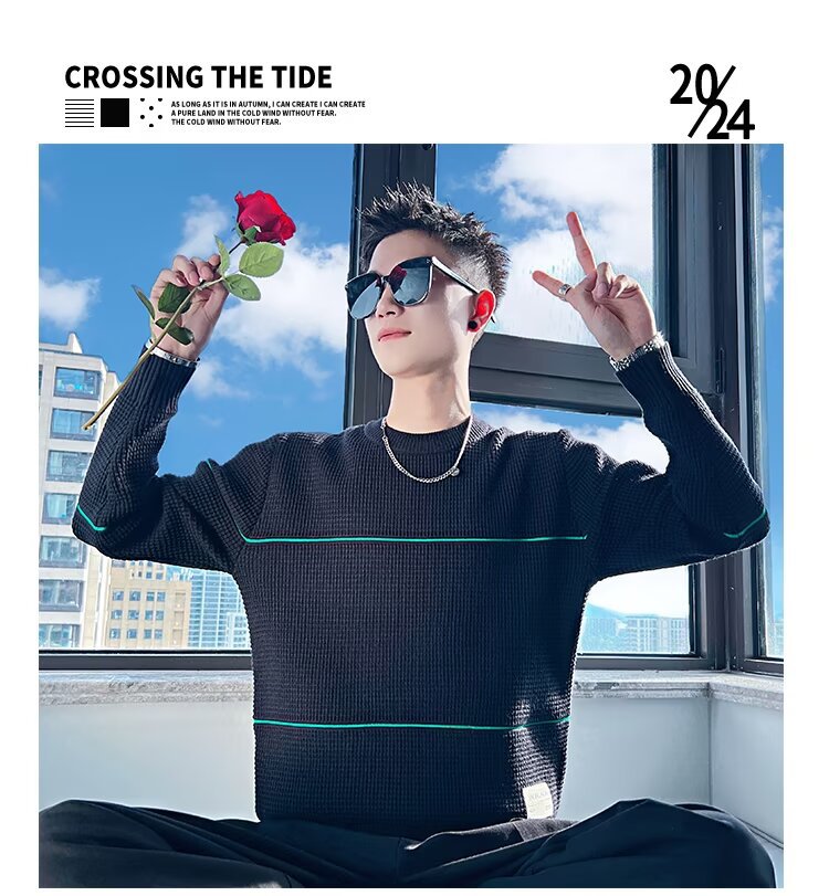 가을과 겨울 새로운 유행 게으른 스타일 니트 둥근 목 니트 스웨터 남자 유행 브랜드 유행 수평 컬러 매칭 풀오버 스웨터스토어 가기