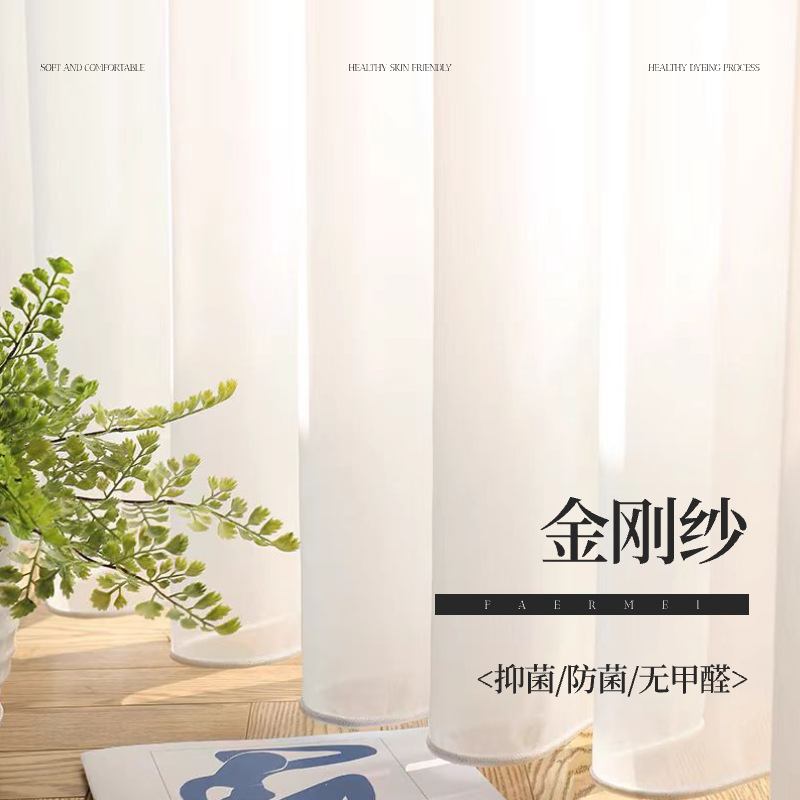 Hengli King Kong 원사 현대 간단한 흰색 커튼 창 스크린 반투명 침실 발코니 거실 거즈 커튼 도매스토어 가기