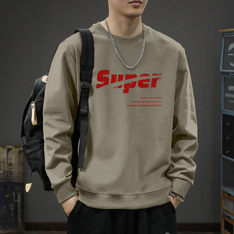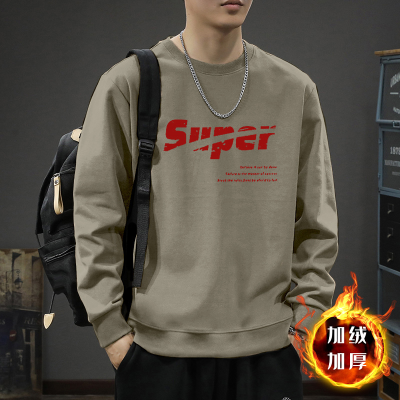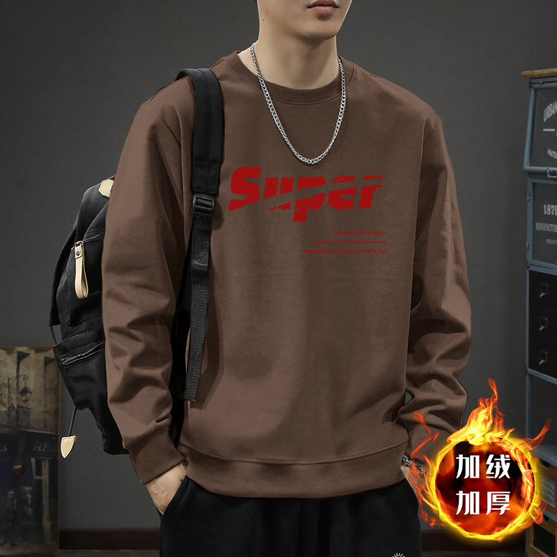 • 브라운 라운드넥 스웨트셔츠 플러스 벨벳스타일-2352【GL】