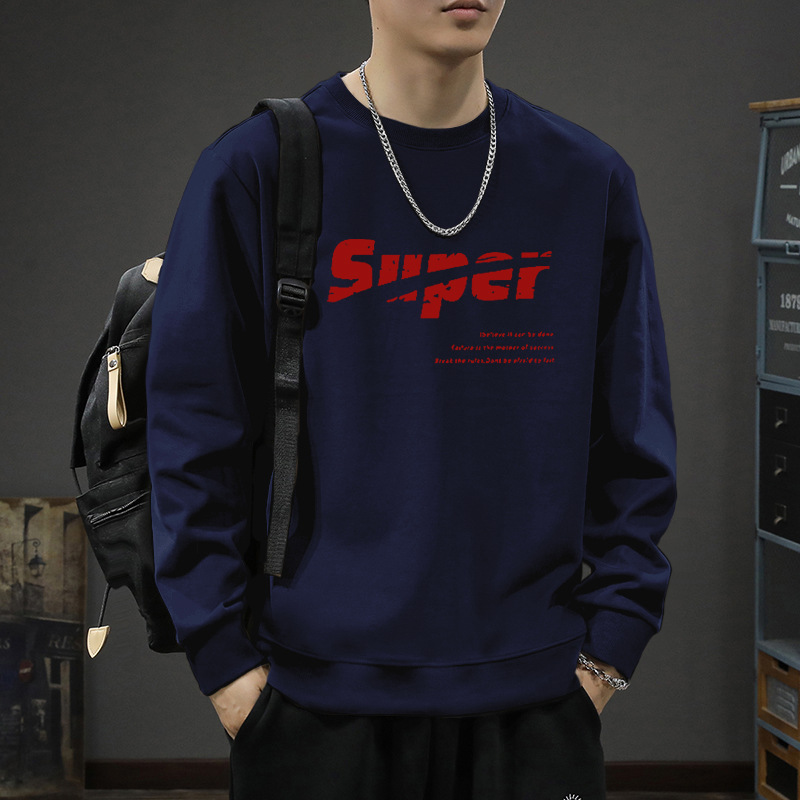 • 네이비블루 라운드넥 스웨트셔츠 플러스 벨벳스타일-2352【GL】