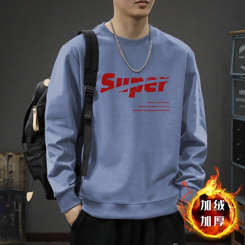 • 그레이 블루 라운드넥 스웨트셔츠 플러스 플리스 스타일-2352【GL】