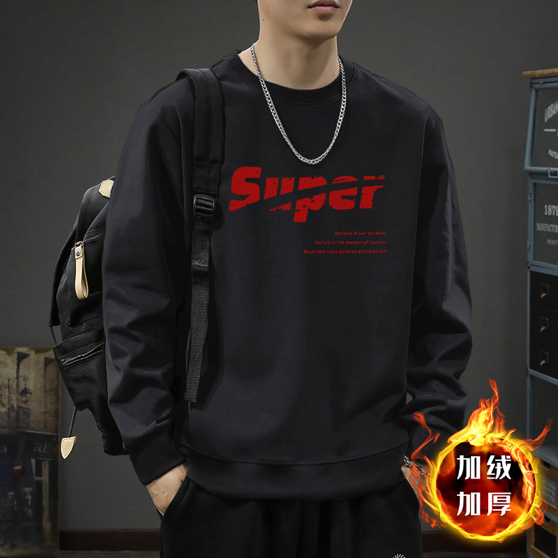 • 블랙 라운드넥 스웨트셔츠 플러스 플리스 스타일-2352【GL】