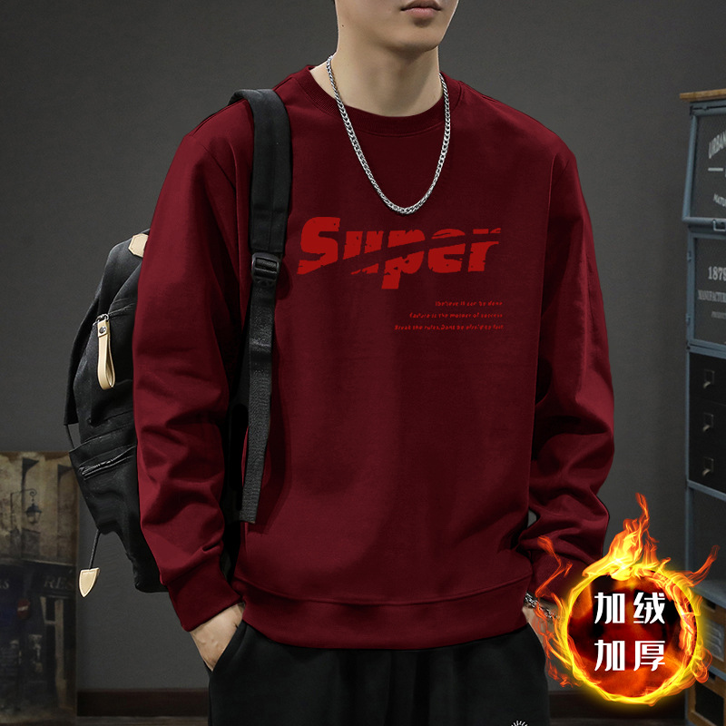 • 버건디 라운드넥 스웨트셔츠 플러스 플리스 스타일-2352【GL】