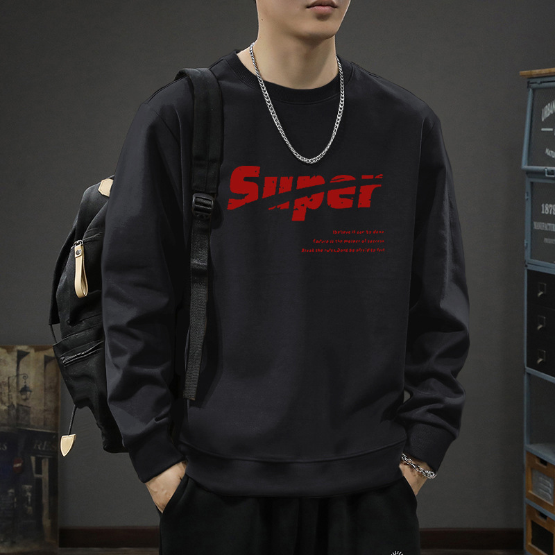 • 블랙 라운드넥 스웨트셔츠 레귤러 스타일-2352【GL】