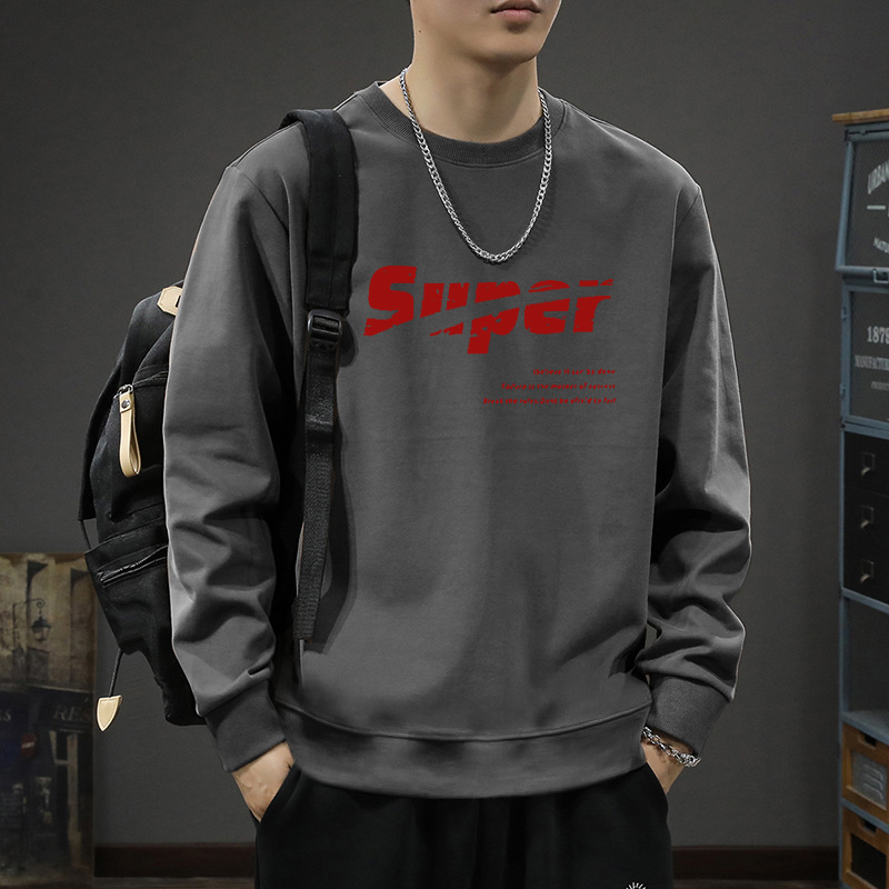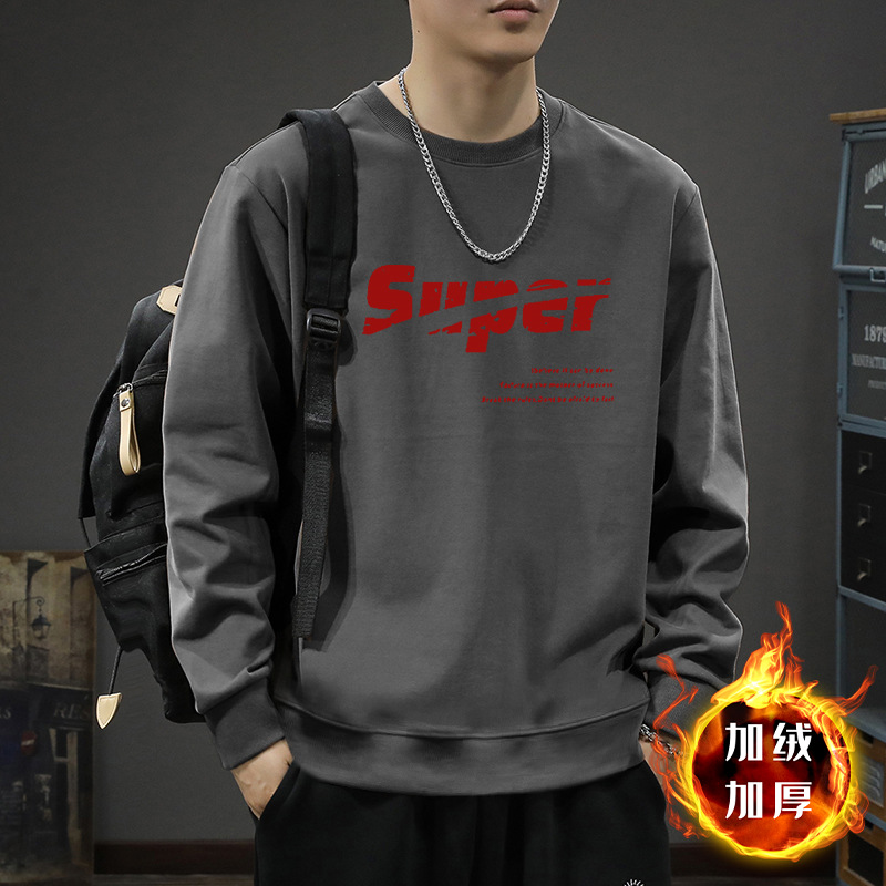• 벨벳스타일 다크그레이 라운드넥 스웨트셔츠-2352【GL】