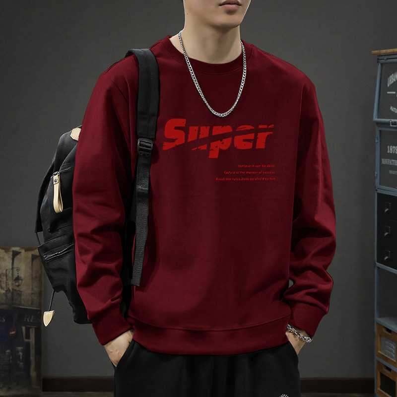• 버건디 라운드넥 스웨트셔츠 레귤러 스타일-2352【GL】