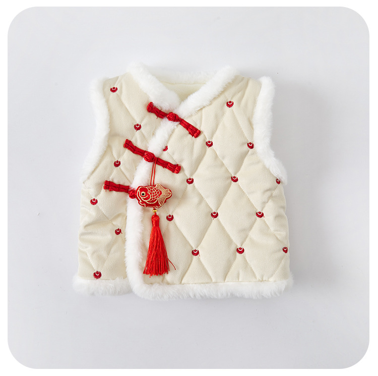 영유아 신년복, 아기옷, 겨울옷, 중국풍 조끼, 남아용 빨간색 새해 조끼, 아기 한 살옷