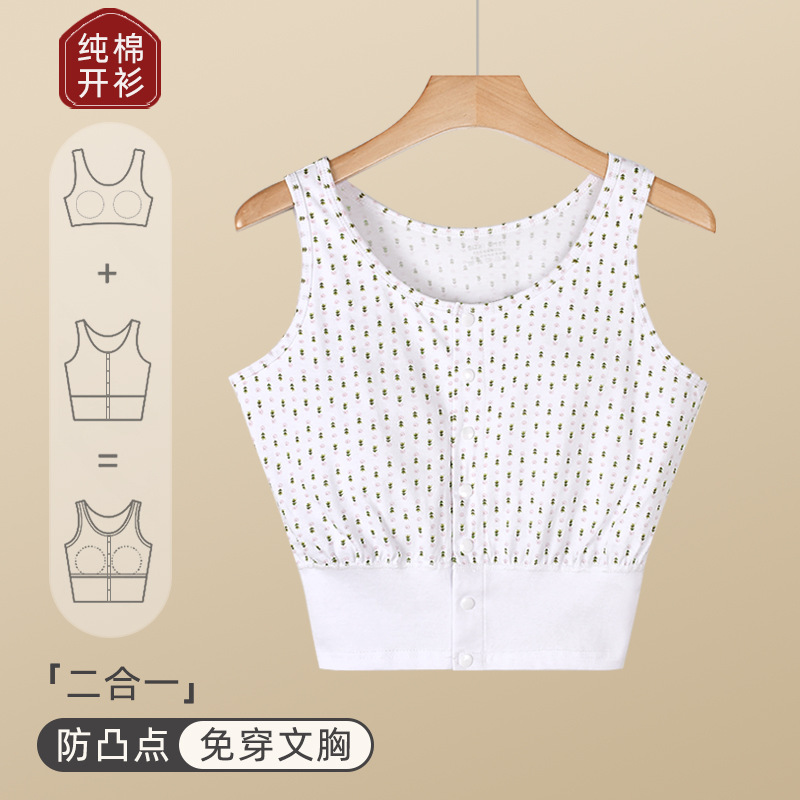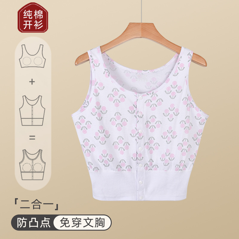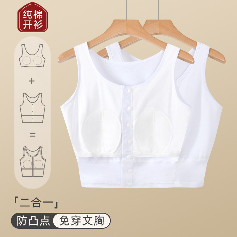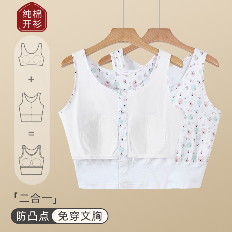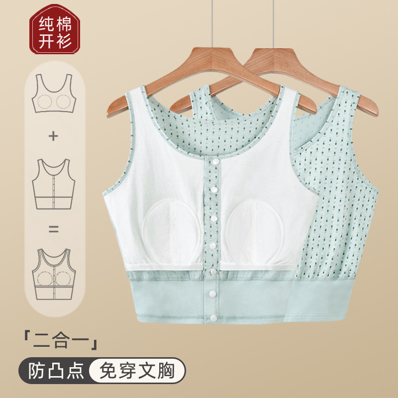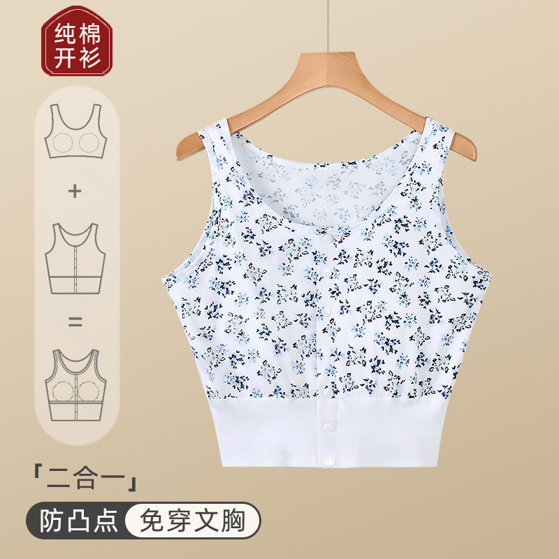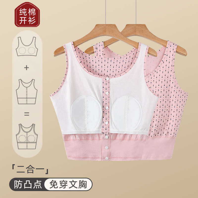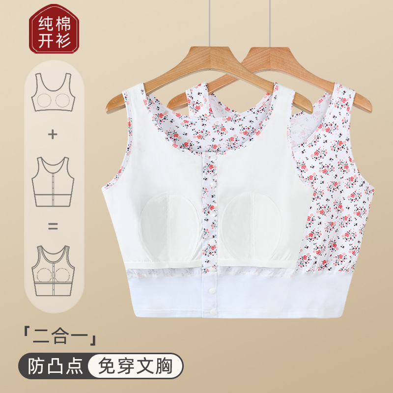 가슴 패드가 있는 노인용 순면 여성 조끼, 브라 프리, 범프 방지, 중년 및 노인 할머니를 위한 루즈한 베이스 레이어 가디건 속옷, 여름용스토어 가기
