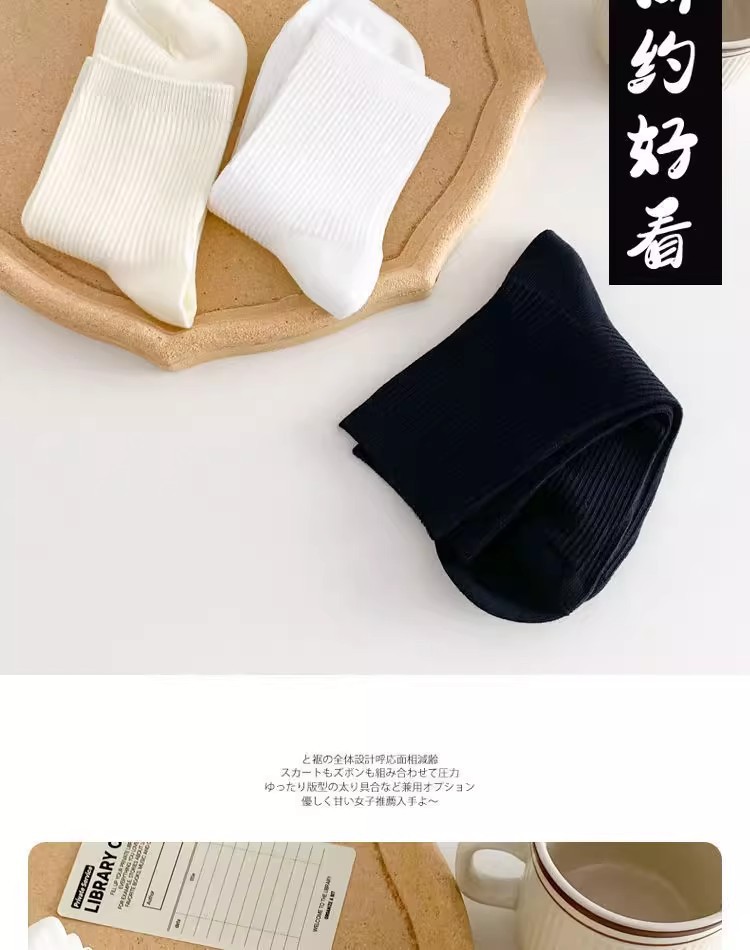 화이트 양말 여자 미드 배럴 Ins 트렌디 올매치 한국식 솔리드 컬러 파일 양말 Jk 일본식 귀여운 스타킹 학술 스타일스토어 가기