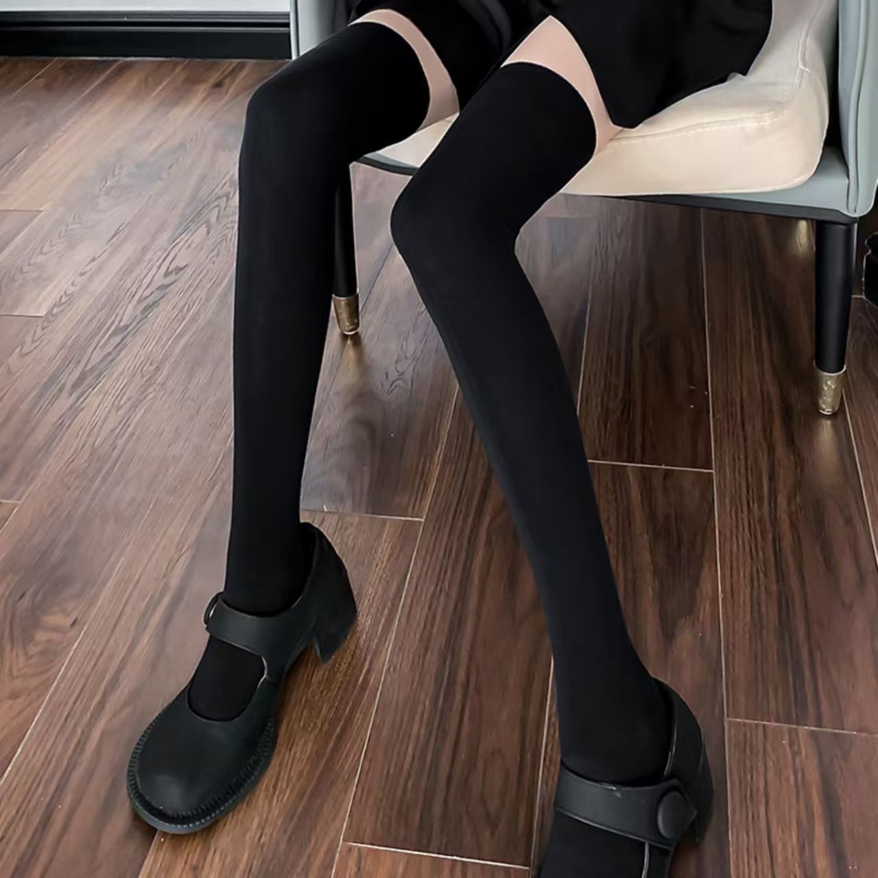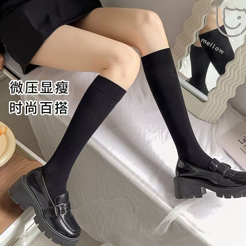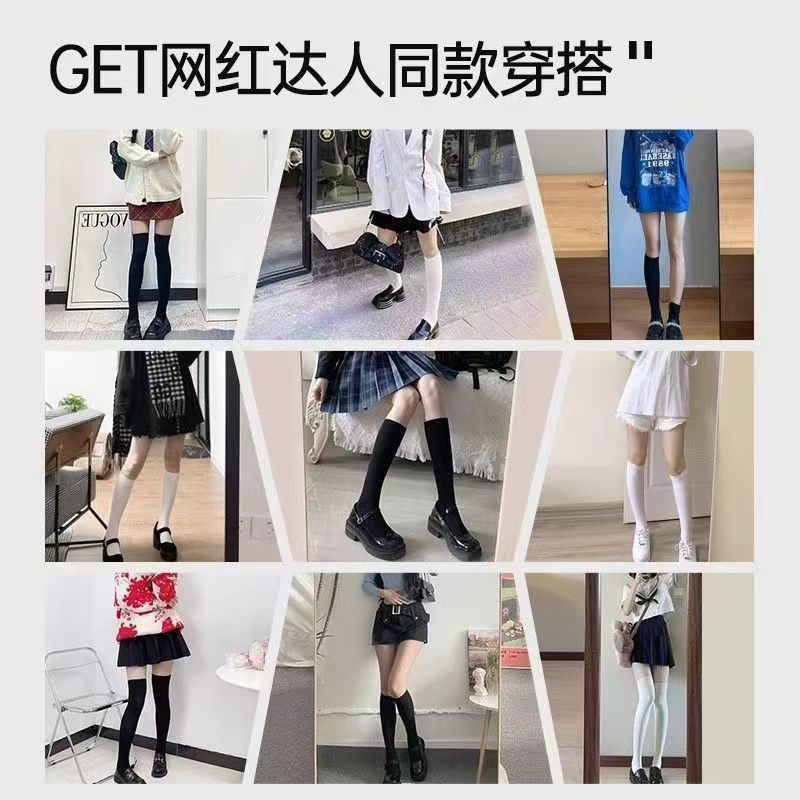 스타킹 흑백 송아지 무릎 위 양말 여성 종아리 중간 양말 봄과 여름 슬리밍 다리 무릎 위 양말 공장 직접 판매스토어 가기